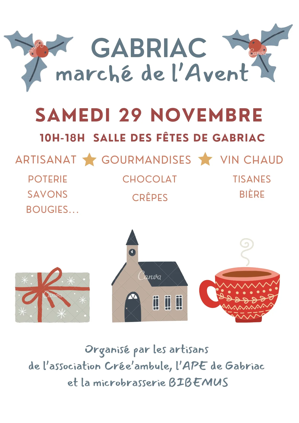 Les artisans locaux et l'APE vous invitent à la salle des fêtes de Gabriac pour partager un moment convivial :