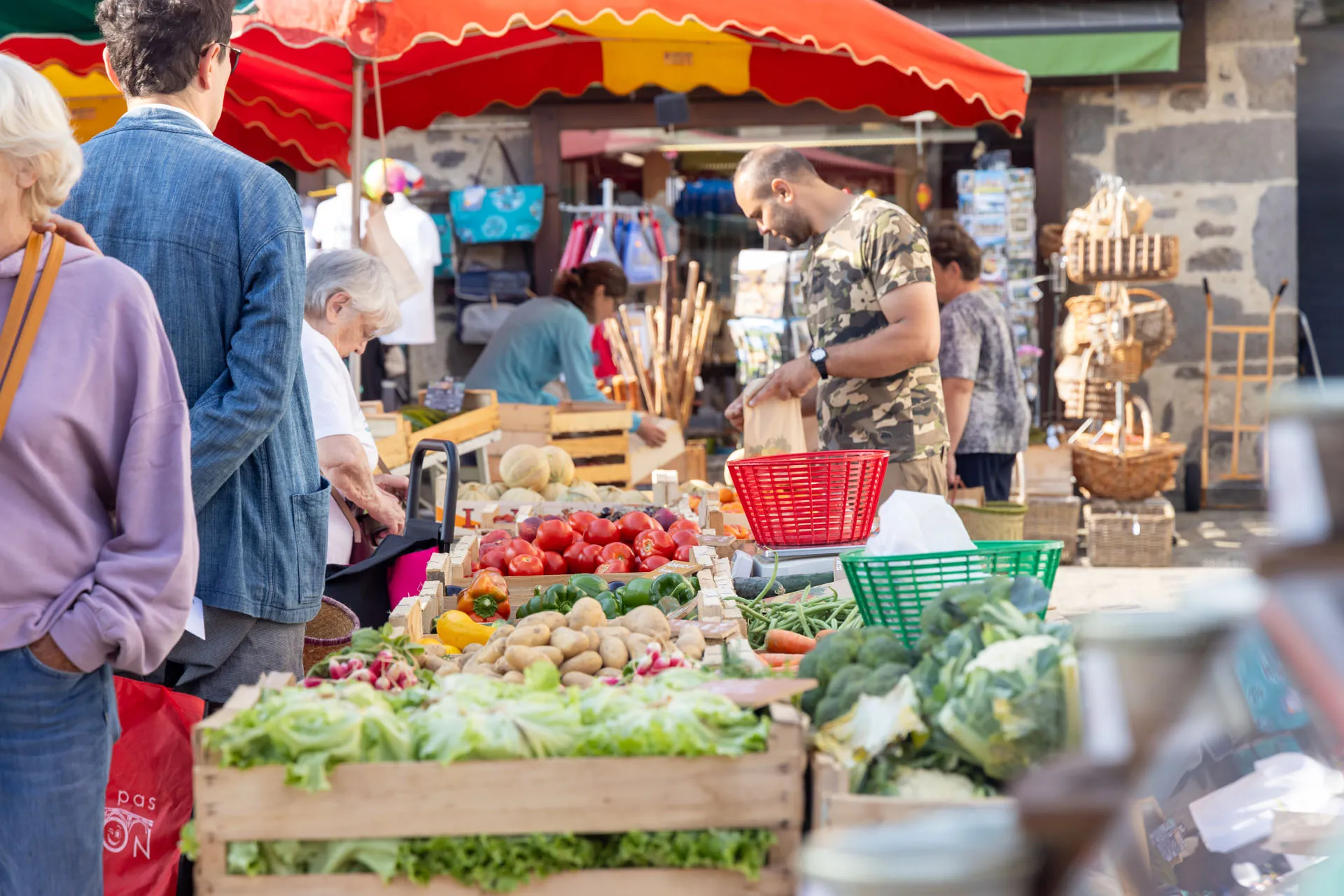 Beau marché rassemblant producteurs locaux : charcuterie, maraichage, fromages, pain, viande, savons au lait d’ânesses... et poissons. Traiteurs, primeur et habillement et artisanat.