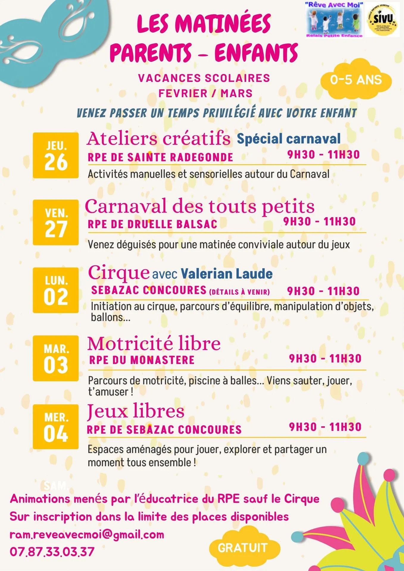 Carnaval et Cirque : venez passer un temps privilégié avec votre enfant !