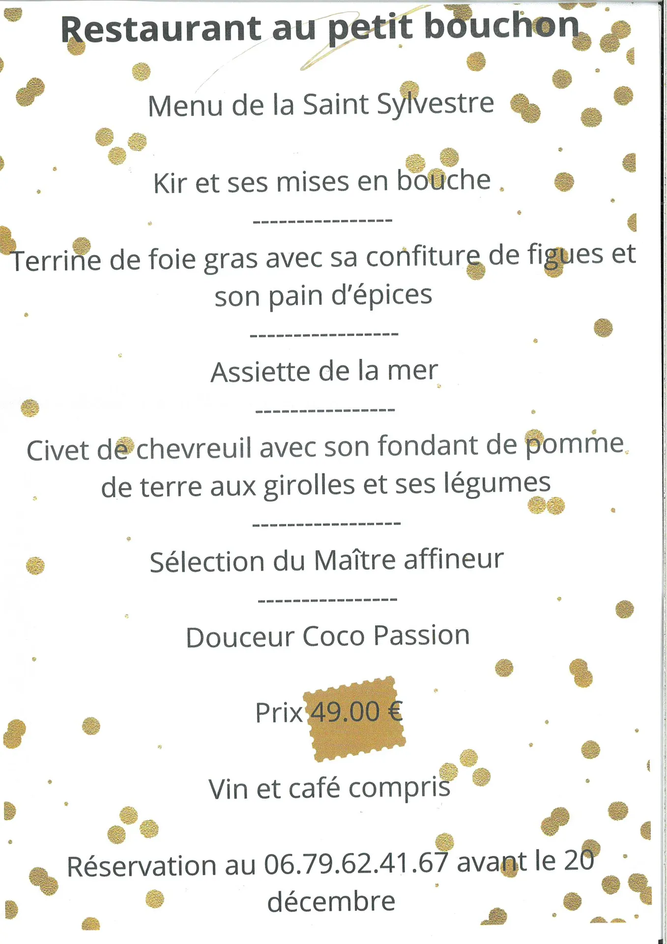 Le restaurant le Petit Bouchon vous propose un repas pour la Saint Sylvestre !