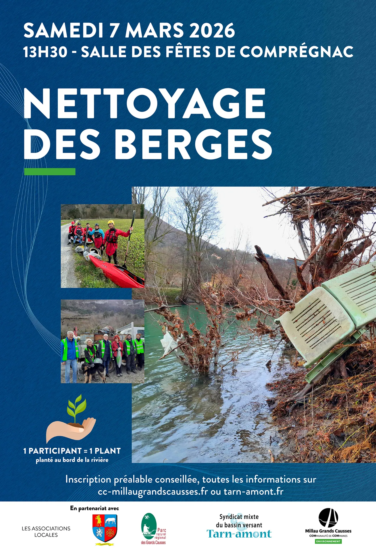 Le Syndicat mixte du bassin versant du Tarn-amont coorganise, avec la Communauté de Communes Millau Grands Causses et la commune de Comprégnac, un nettoyage des berges du Tarn. Cette année, rendez vous samedi 7 mars 2026.