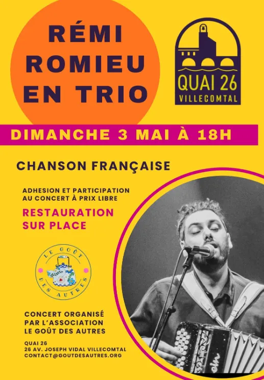 Accompagné de son accordéon et de percussions au pied ou en formation trio avec batterie, Rémi Romieu vous plonge dans son univers.
