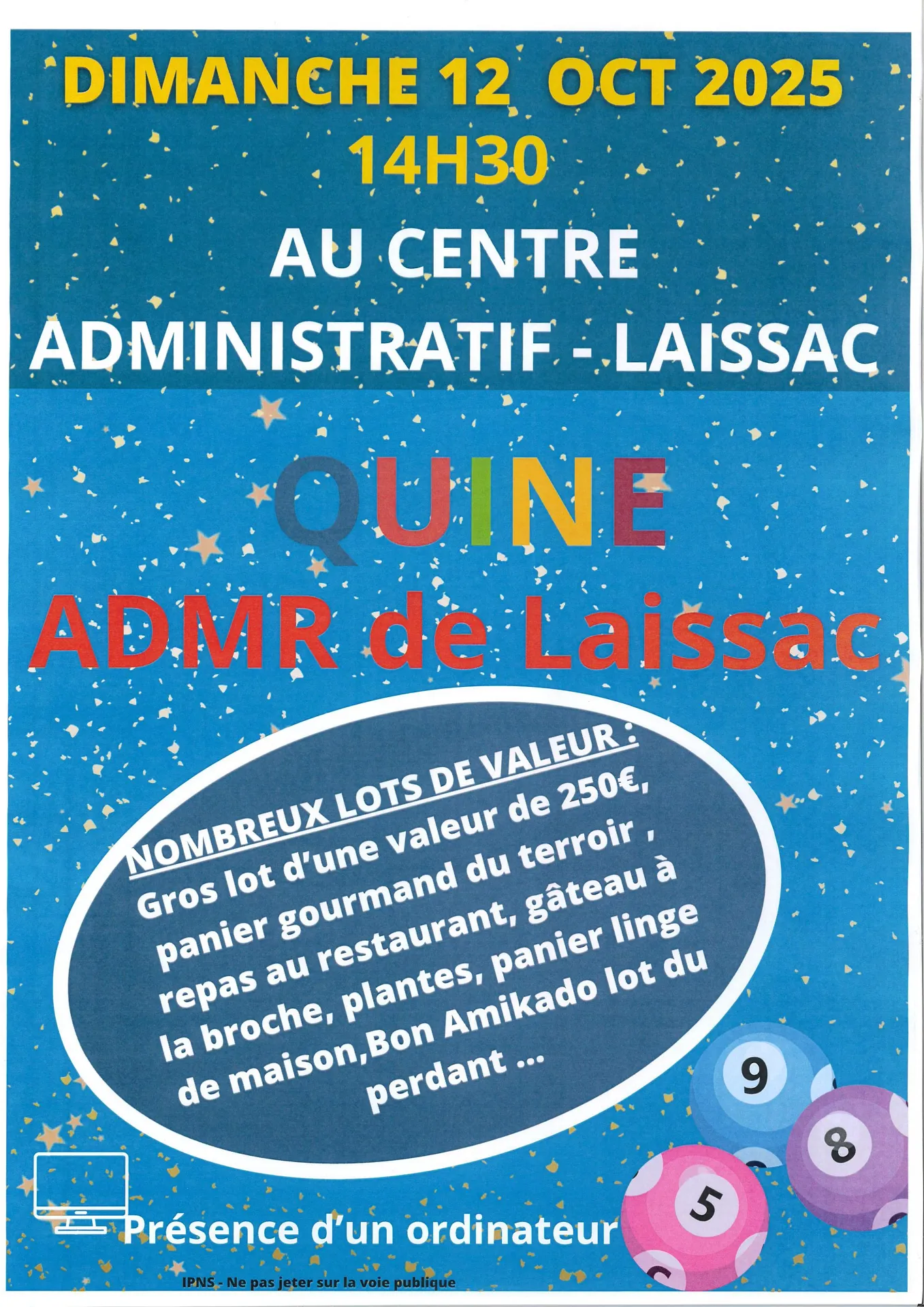 L'ADMR vous propose un quine à 14h30 au centre administratif de Laissac.