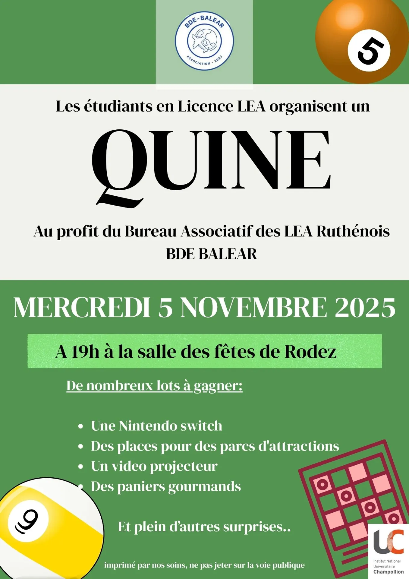 Les étudiants de LEA organisent un quine au profit du Bureau Associatif des LEA Ruthénois.