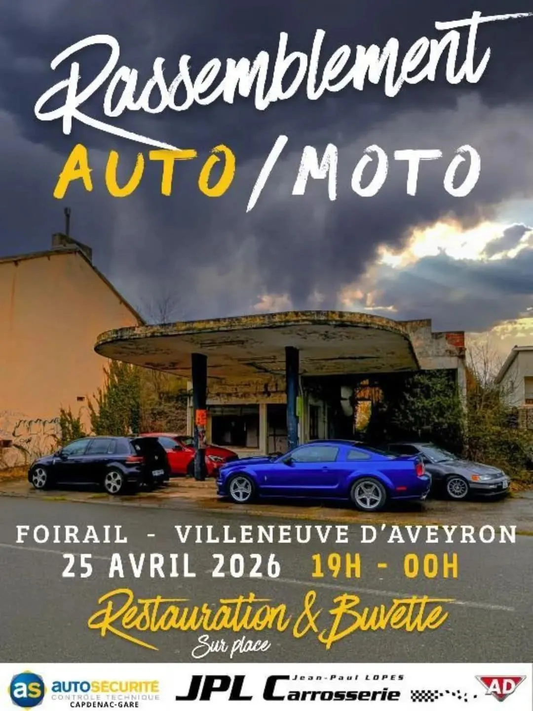 Rassemblement auto/moto au foirail de Villeneuve avec restauration et buvette sur place.