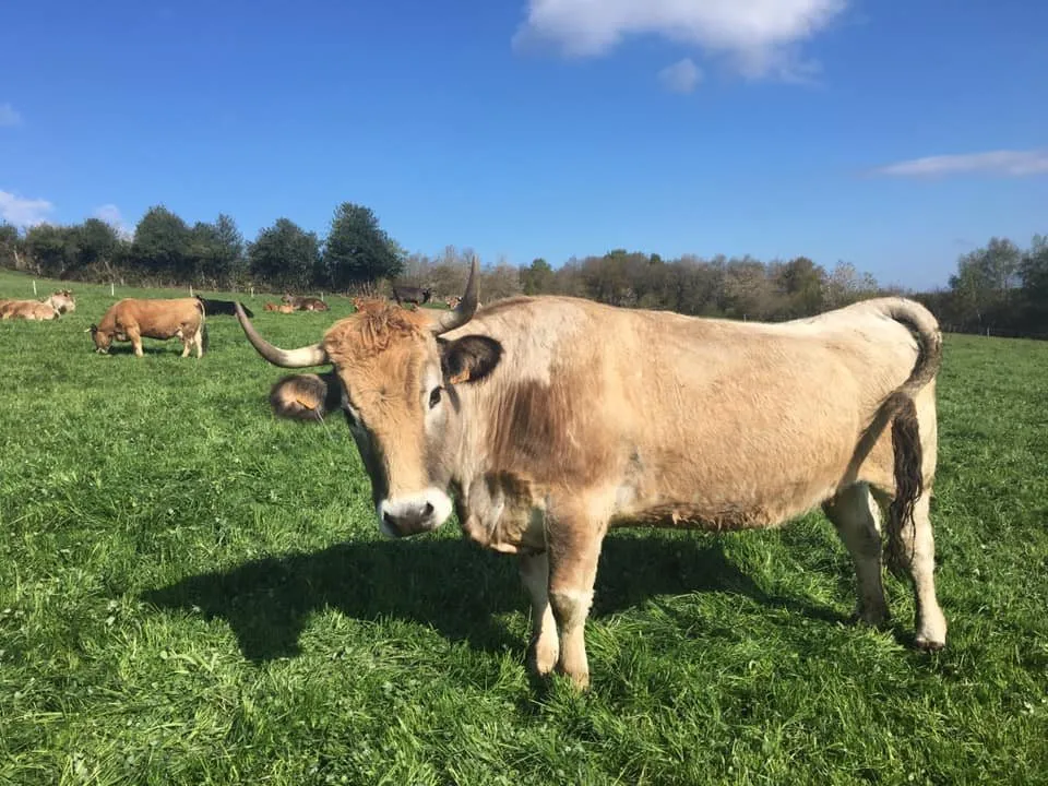 Production de vaches Aubrac, de canards gras, d'arbres fruitiers et de myrtilles.