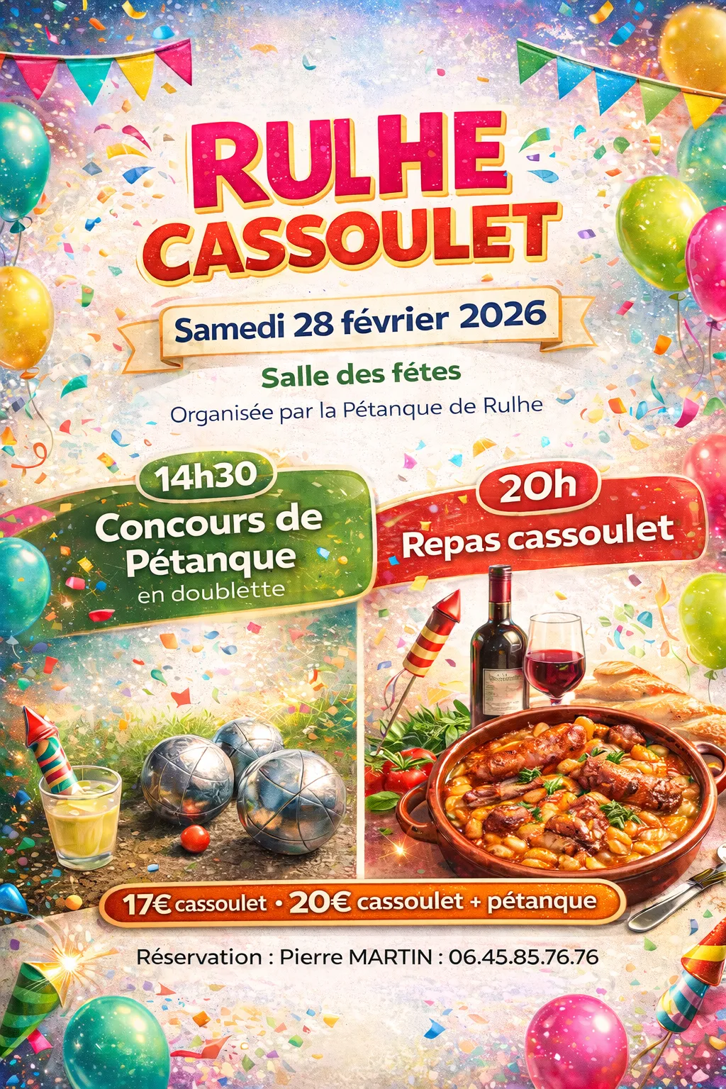 17€ cassoulet 20€ cassoulet + pétanque