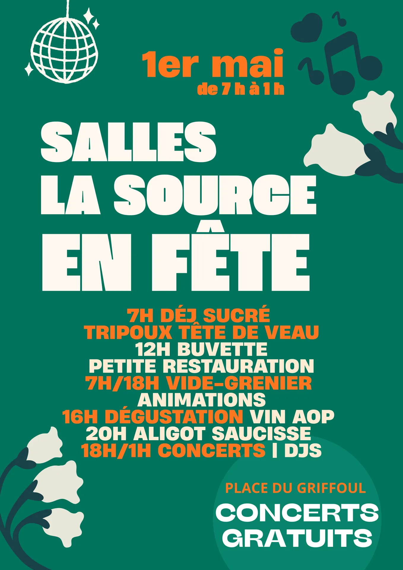 Vendredi 1er mai, de nombreuses associations locales se réunissent à nouveau pour organiser une grande fête de village, de 7h à 1h du matin, place du Griffoul.