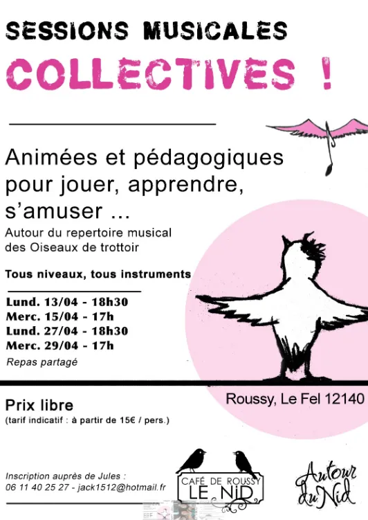 Sessions musicales collectivesLe Nid - Café de Roussy557 chemin du Roussy12140 Le Fel lat. 44.6547 - lon. 2.5134