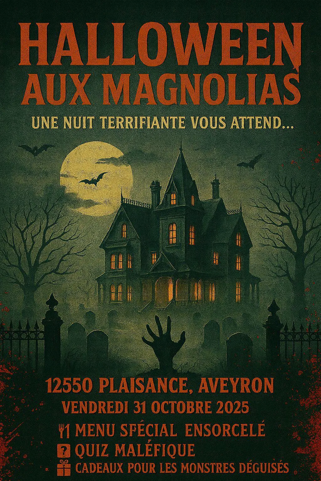 Le Restaurant des Magnolias vous propose une soirée et un menu spécial Halloween avec un Quizz maléfique et des cadeaux pour les monstres déguisés !