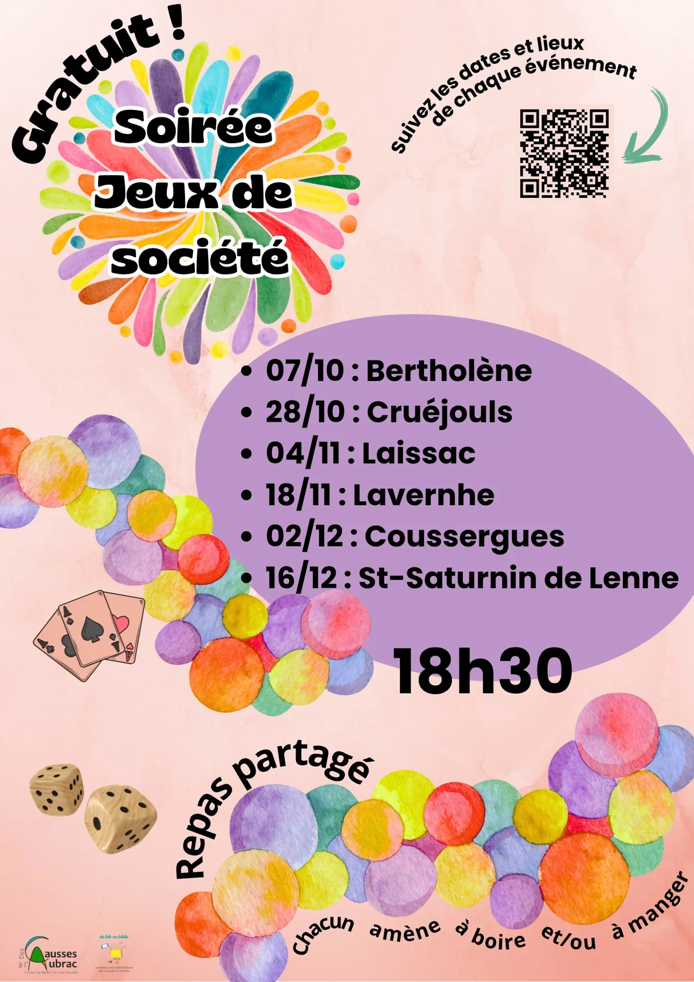 Soirée jeux de société à partir de 18h30 à la bibliothèque de Coussergues. Gratuit. Ouvert à tous. Repas partagé : chacun amène à boire et/ou à manger.