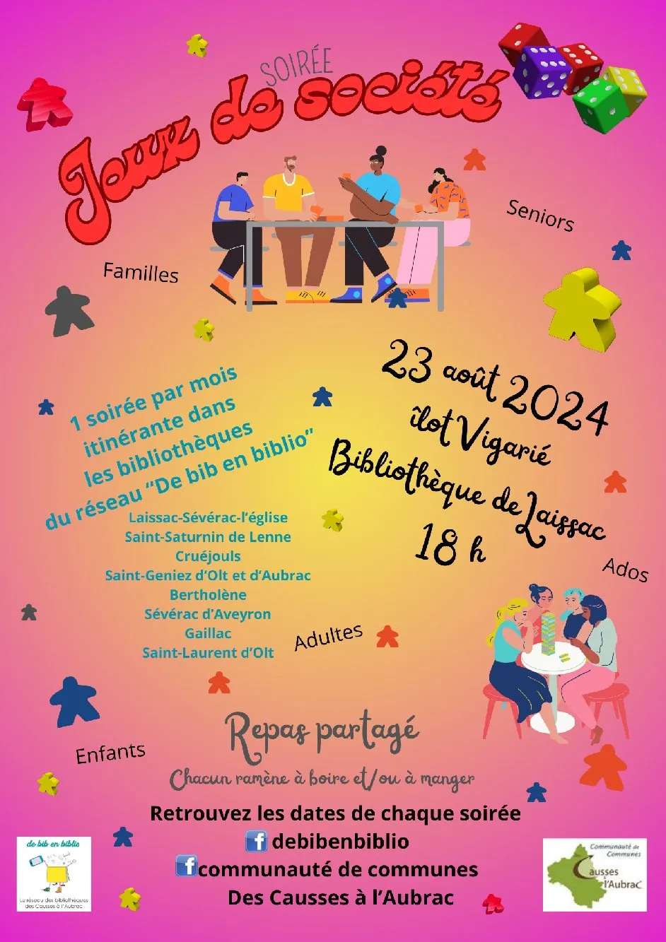 Soirée jeux de société à Laissac12310 Laissac-Sévérac l'Église lat. 44.3807 - lon. 2.82233