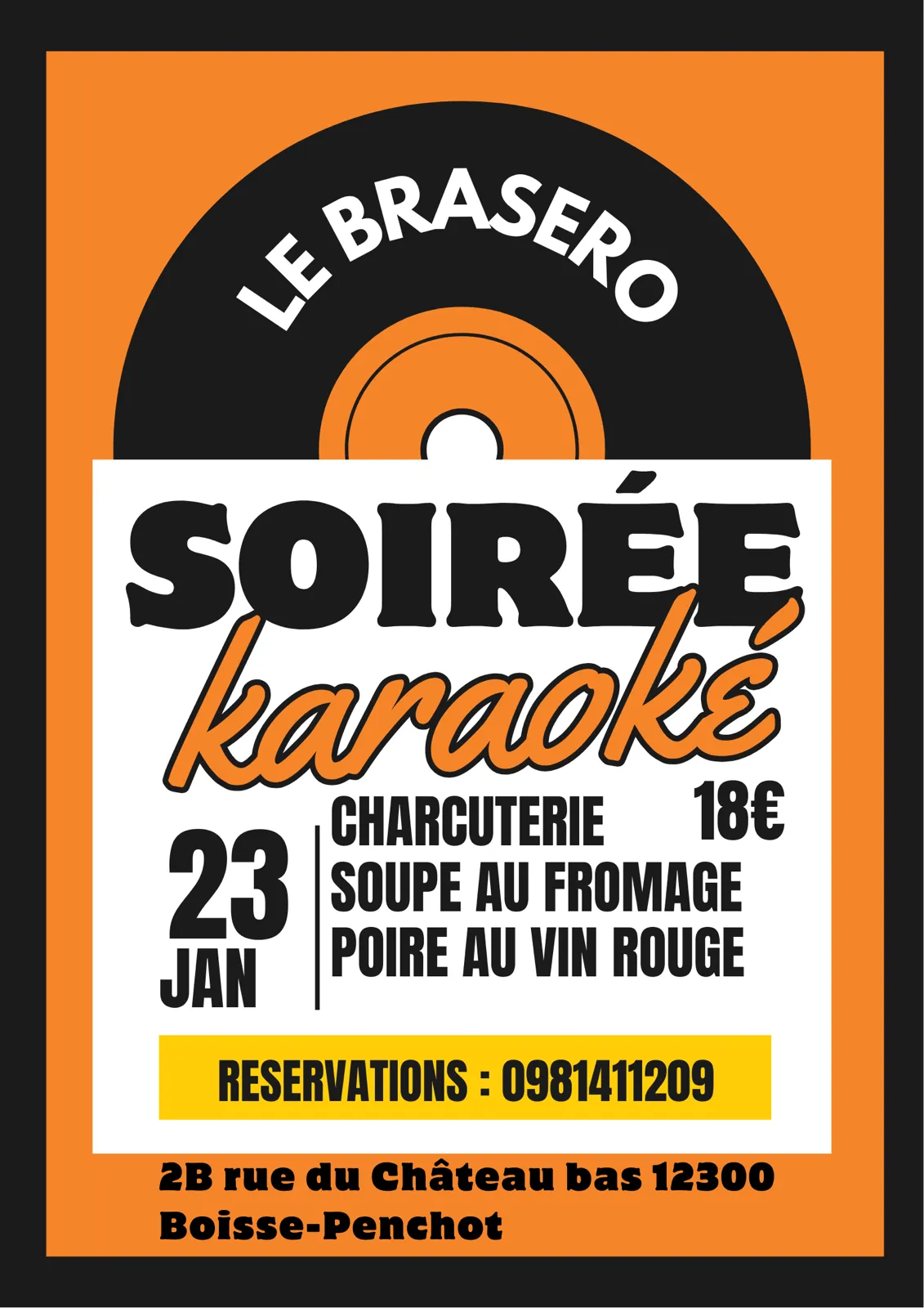 Menu spécial à 18€ pour la soirée karaoké au Brasero :