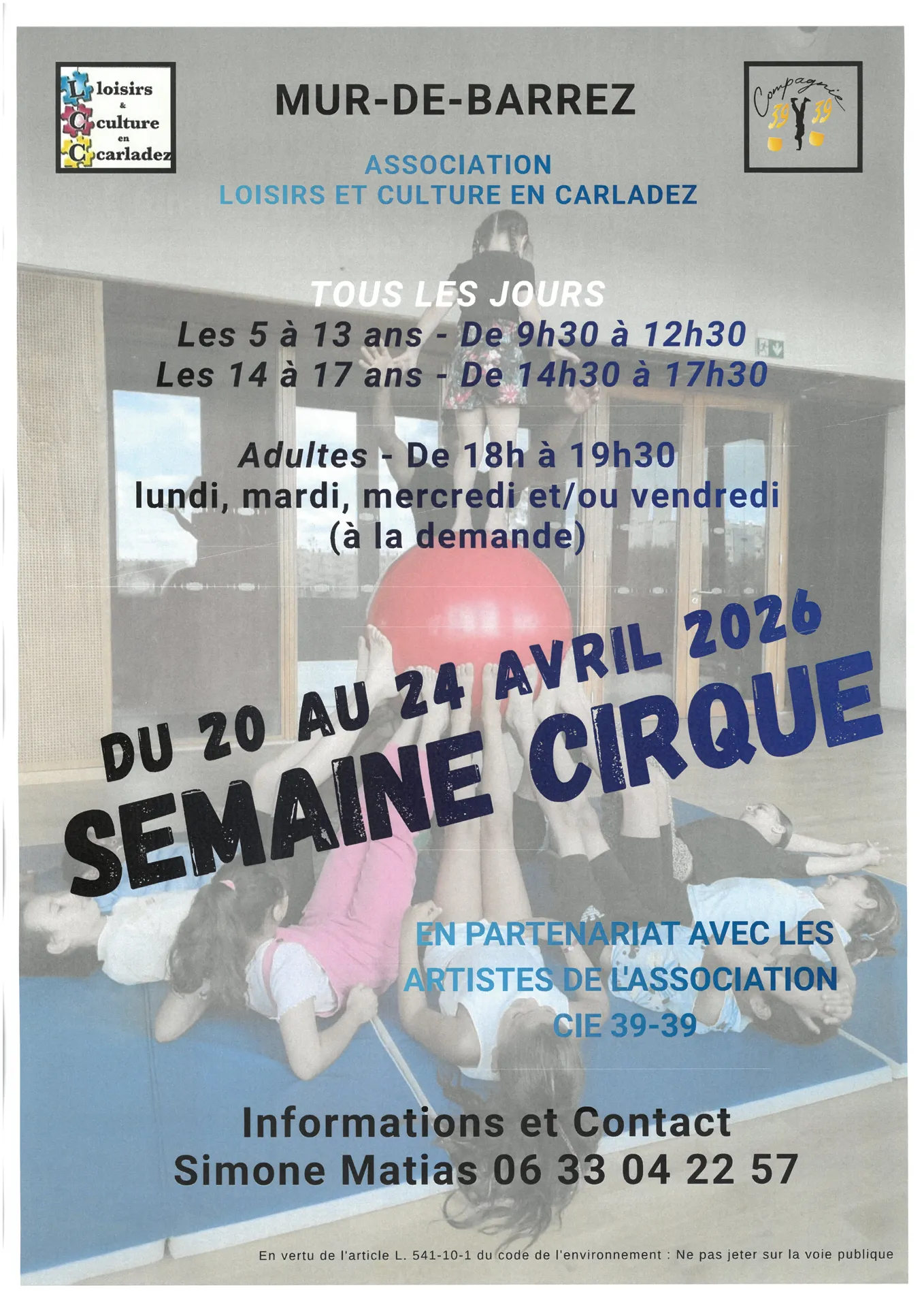 Un stage de cirque avec la Cie 39-39 et l'association Loisirs et Culture en Carladez (de 18 à 99 ans pour tous les niveaux).