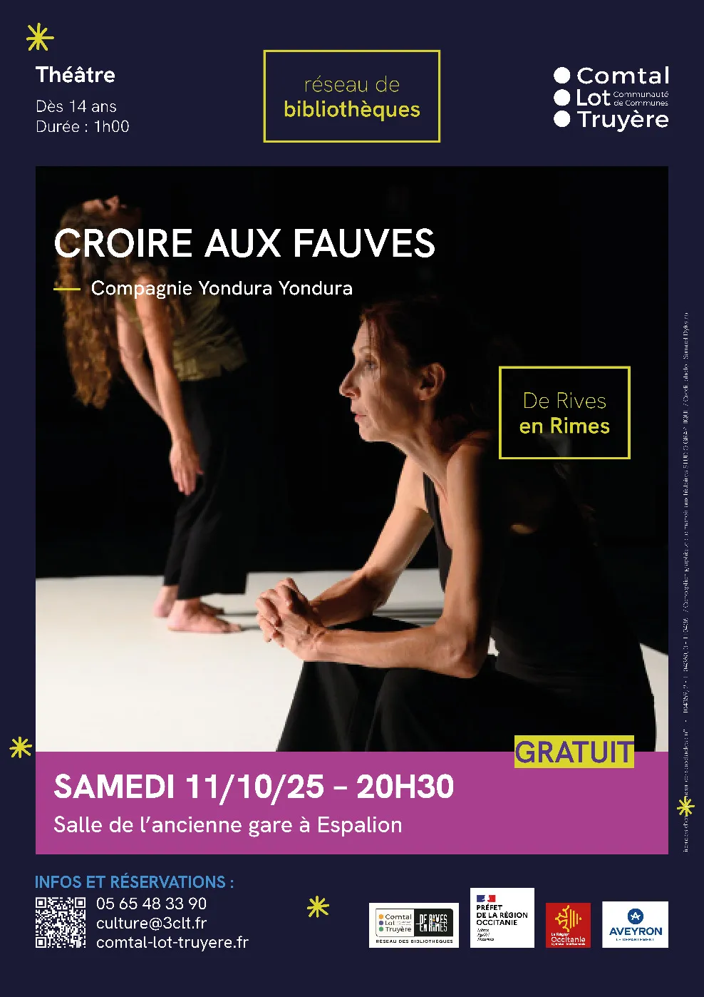 Infos et réservations : https://comtal-lot-truyere.fr/evenement/croire-aux-fauves-theatre-gratuit-espalion