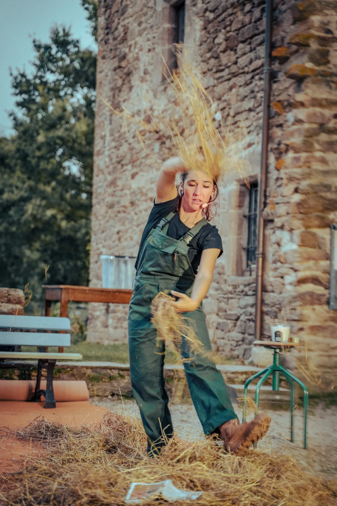 Un petit rhume des foins sans symptôme, ça vous tente ? Un p’tit bout d’été toute l’année, histoire d’envoyer du doré plein les mirettes ? La poésie-foin de cette lectureperformance vous fera éternuer de plaisir et de nostalgie à la fois, tant la poétesse jongle entre des registres aussi distincts que la clownerie et le lyrisme des paysages.