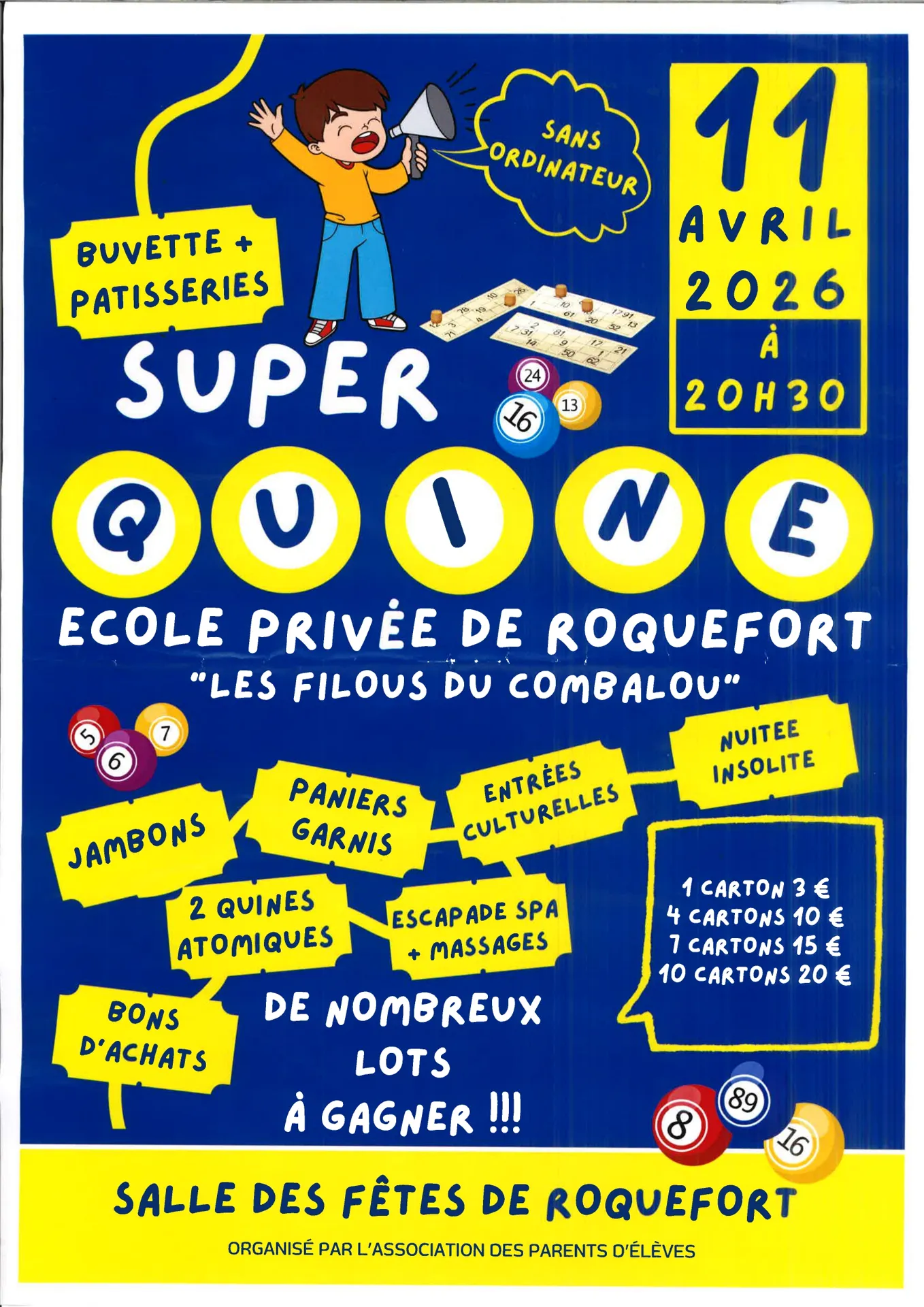 Venez nombreux au Quine de l'école privée "Les Filous du Combalou" !