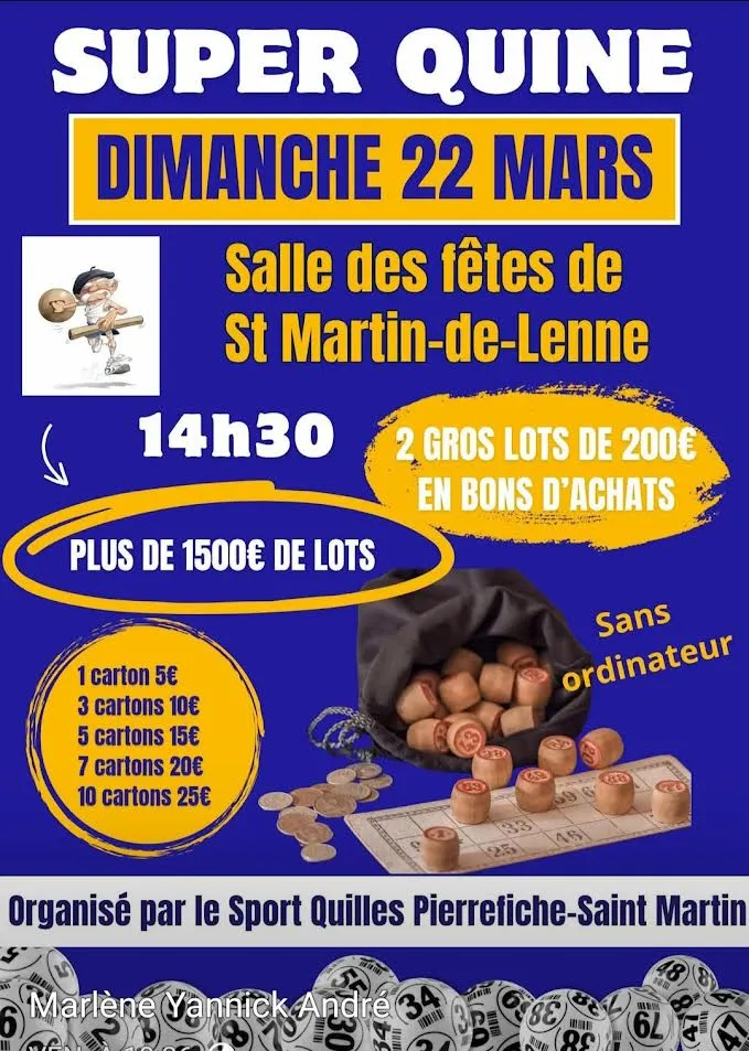 Le Club de quille de St martin Pierrefiche vous propose un quine dimanche 22 mars !
