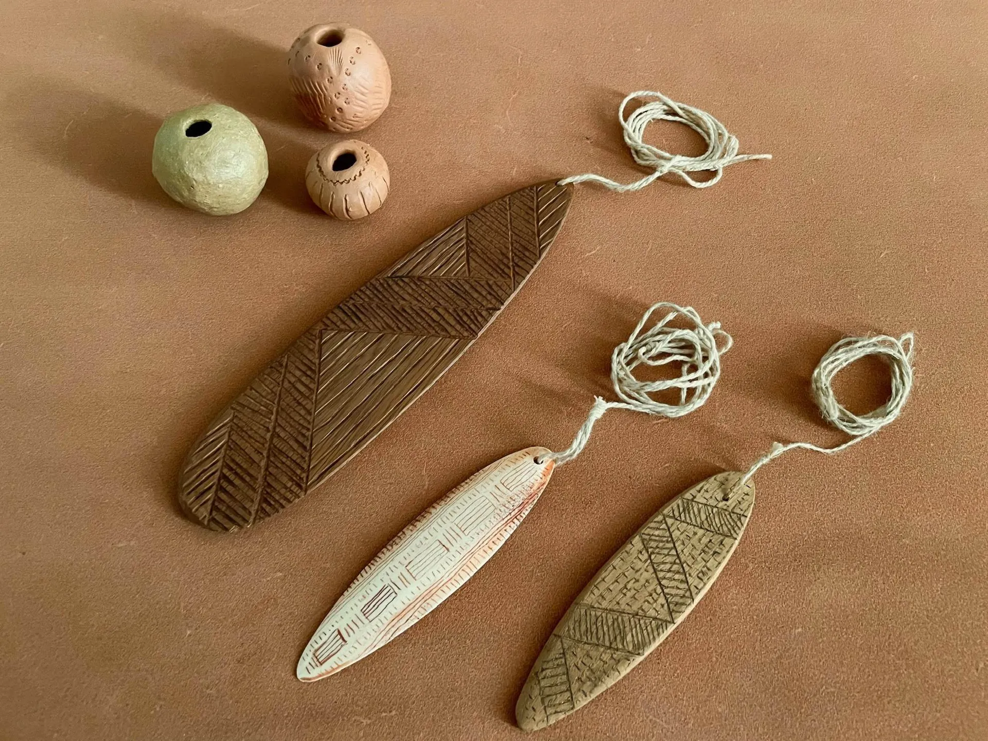 Sons et musique à la Préhistoire – décoration d’un rhombe en bois et façonnage d’un sifflet en argile :