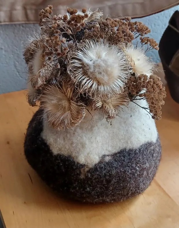 Régine, Artisan d'art, vous expliquera comment elle crée des bijoux en argent au départ de ses gravures (technique de cire perdue) ou en matériaux locaux (bois de cerf et ardoise), comment elle s'est passionnée pour la laine des brebis des causses qu'elle transforme en feutre.