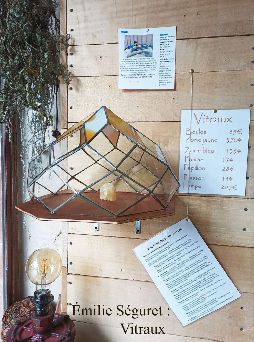 La boutique associative Un mouton dans l'herbe vous fait découvrir le travail d'artisans et de producteurs du Vallon de Marcillac. Laines, herboristerie et gemmothérapie, produits à base de safran, poterie, vannerie, literie artisanale, créations bois, vitraux, bijoux, dessins, livres et cartes, bouquets de moisson, tableaux, décoration et bijoux en origami, créations textiles, miel, crème de châtaignes, confitures artisanales.
