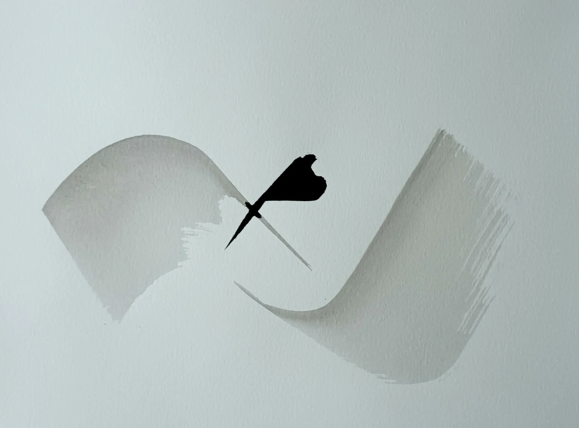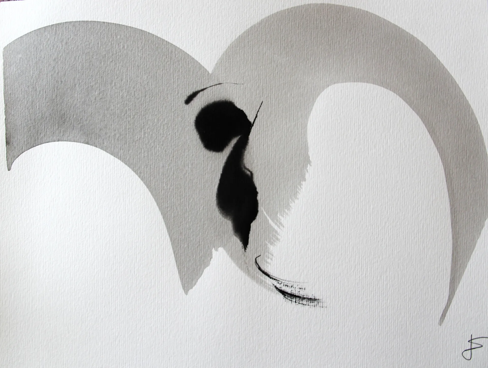 J’aime cet instant où mon corps et le geste qui le prolonge entrent dans une chorégraphie et traduisent un état d’âme qui lui même va faire entrer l’encre dans une autre forme de danse mêlée au dessin.