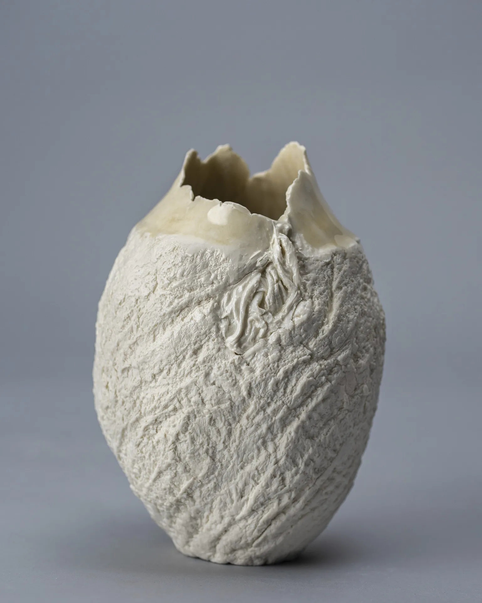 Mon ambition est de sublimer l’empreinte du temps sur la matière: je réalise des œuvres originales en porcelaine qui magnifient le contraste entre la transparence fragile et la résistance brute.