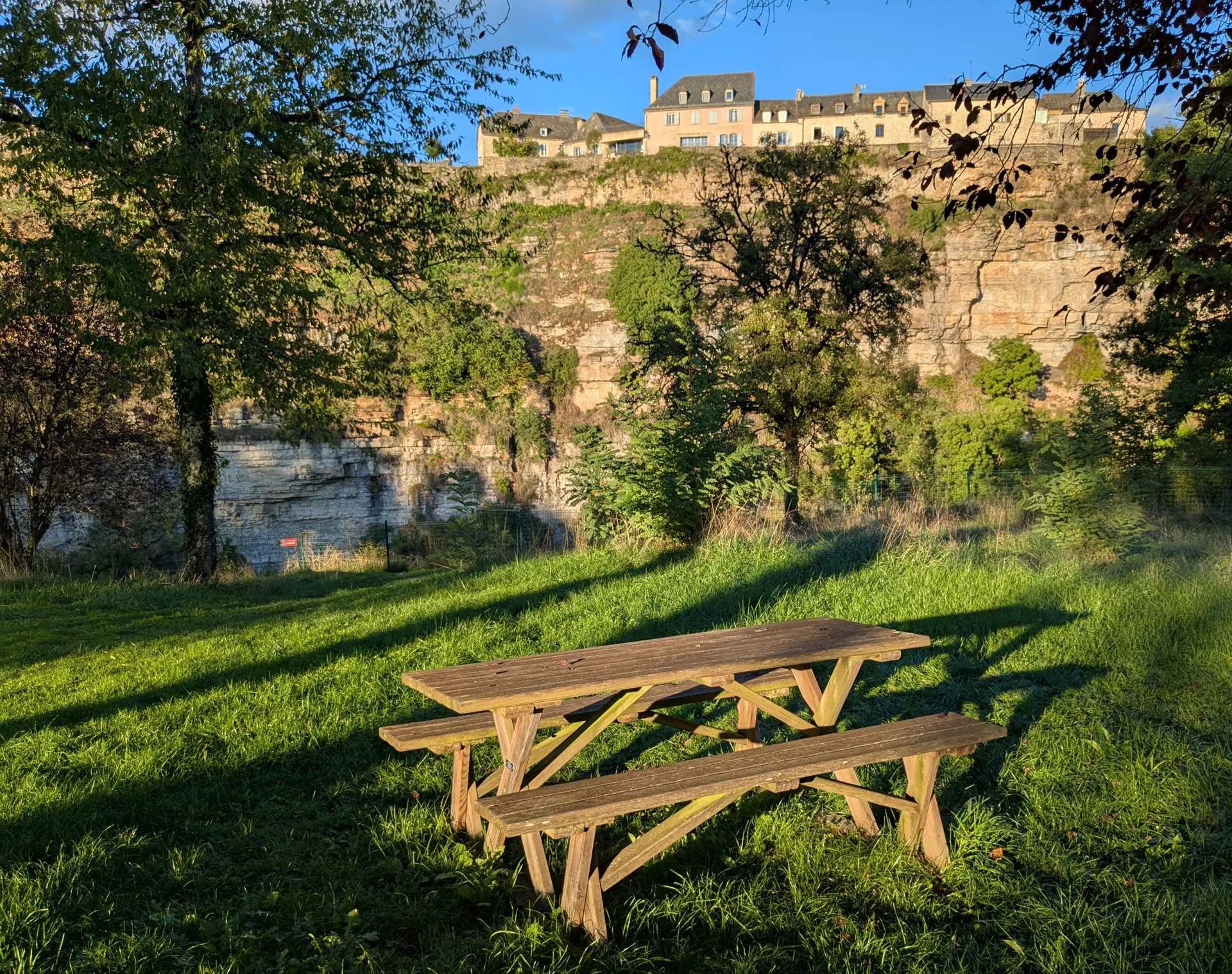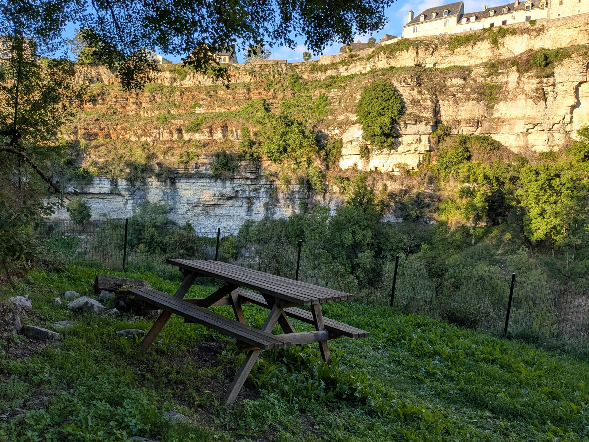 Plusieurs tables vous permettront de déguster un pique-nique au coeur du canyon de Bozouls.