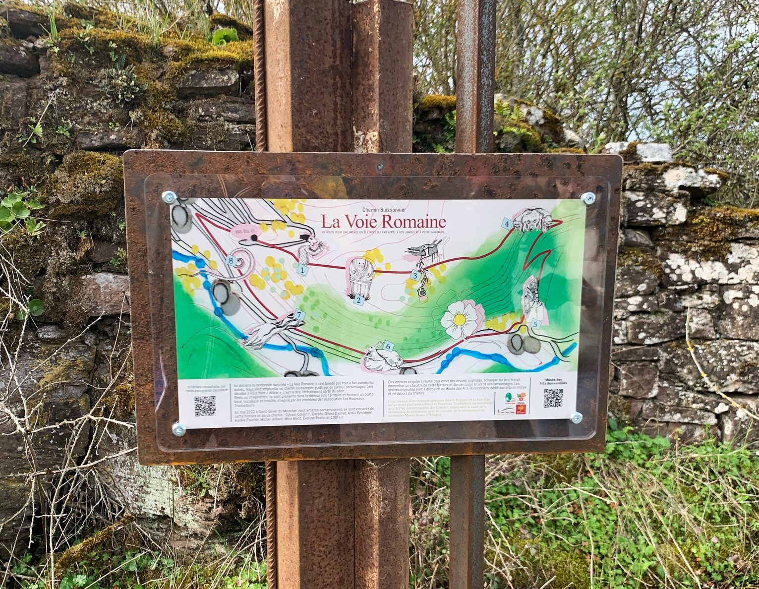 Dans un cadre ombragé, cette balade familiale emprunte une ancienne voie romaine mais aussi… les voies de la création : huit œuvres originales d’artistes plasticiens jalonnent son parcours