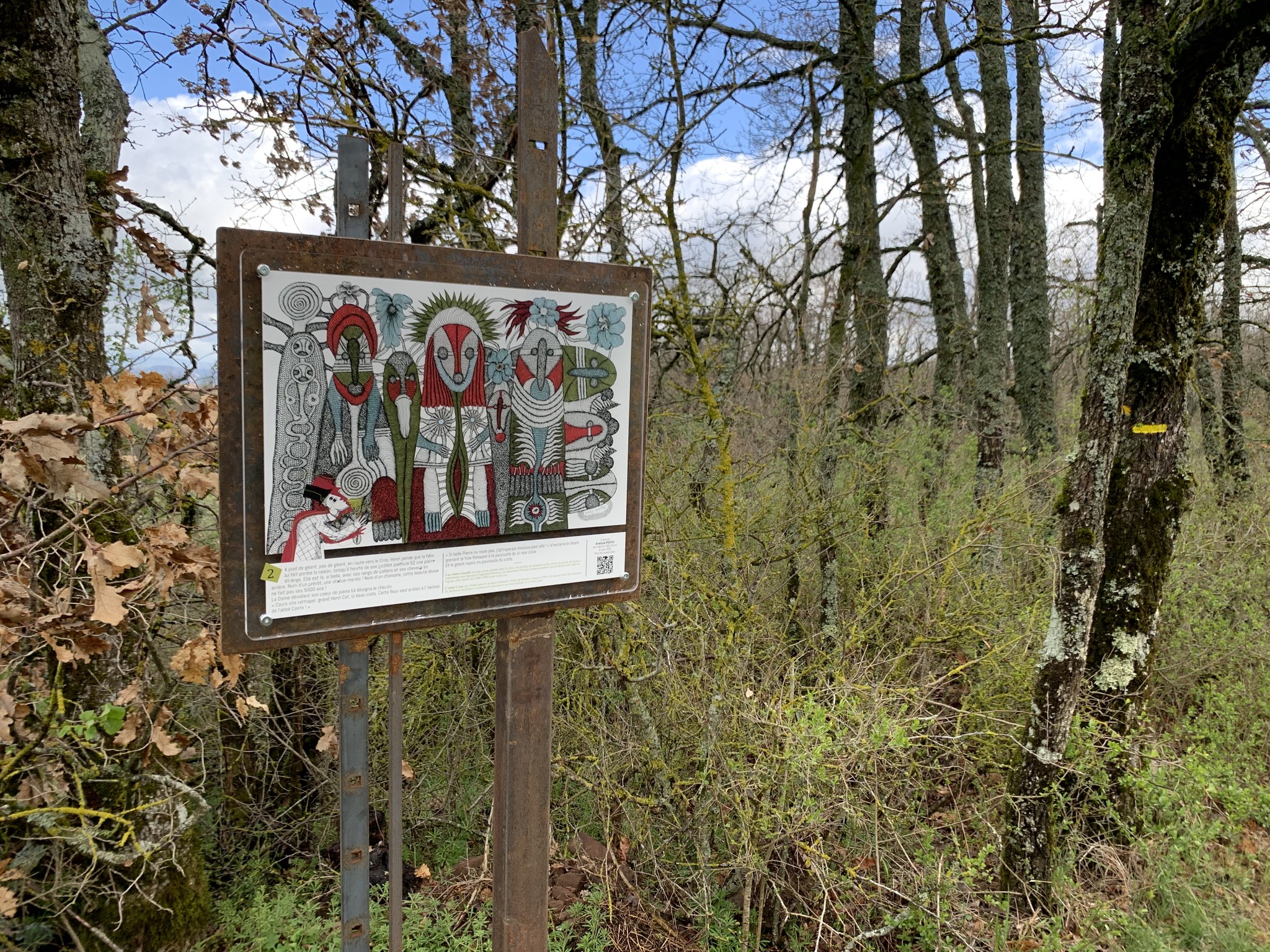 Les statues-menhirs, l’enfant sauvage, le géant Cot, le Drac, Saint-Méen, les diablotins, le peillarot… Au fil de cette promenade sur les pavés clairsemés d’une voie romaine, vous croiserez tous ces personnages issus de l’histoire et des légendes sud-aveyronnaises, représentés sur 8 panneaux par un collectif d’artistes. Pour le plaisir de la marche et de la rêverie !