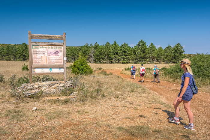 Le dolmen de Jonquet et sa table massive, la plantation des 1789 arbres de la Révolution, les fermes de Beaumescure et des Brouzes émaillent cette traversée d’un Larzac à dominante désertique, paysage de steppes et de pierres sèches étalé jusqu’à l’infini… ou presque : jusqu’à la très belle descente dans le cirque de Saint-Geniez-de-Bertrand, à l’ouest