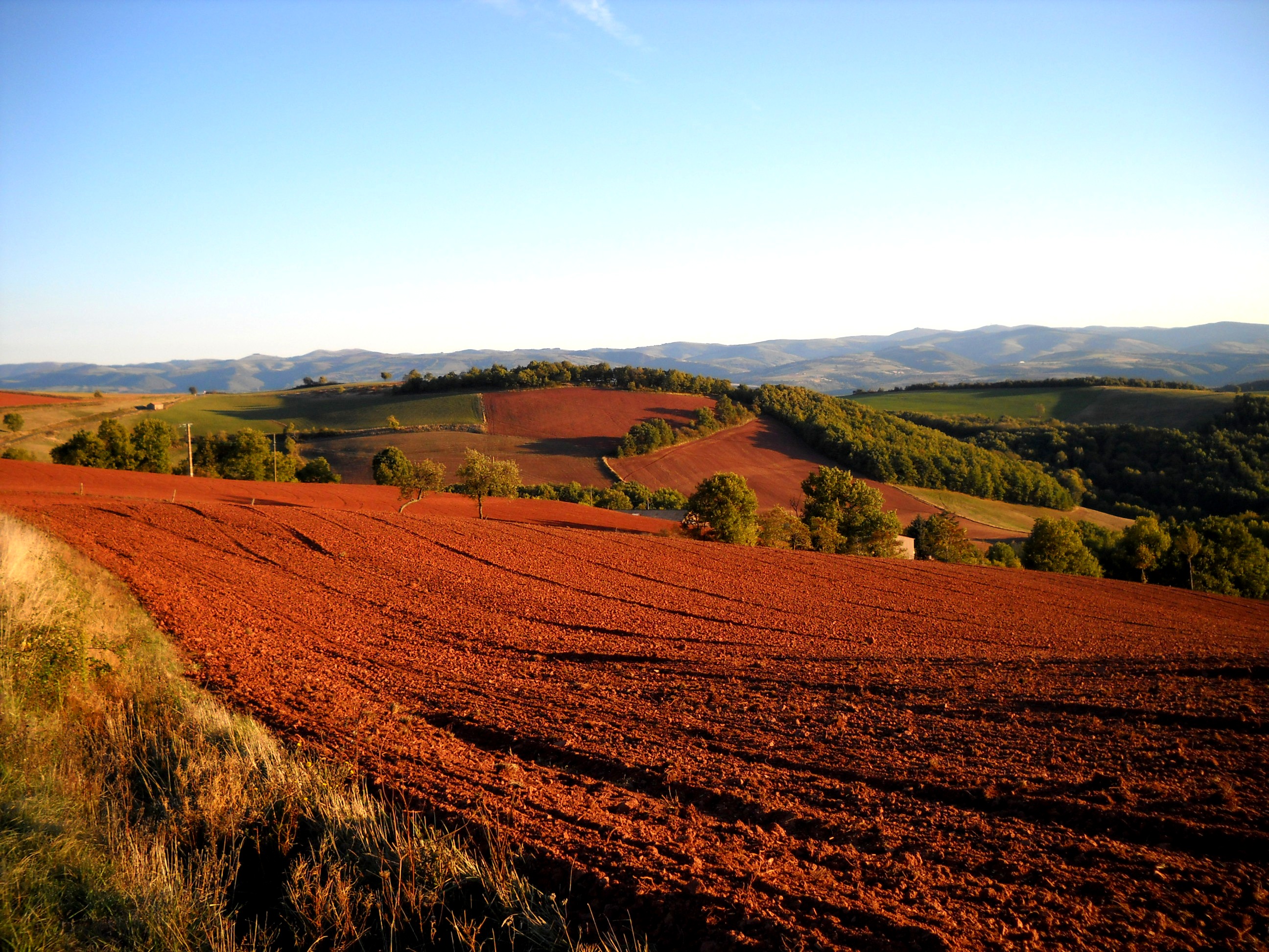 Un paysage de vallons verdoyants et de terres rouges, avec en toile de fond les hauteurs des monts de Lacaune, forme l’écrin paysager de cette randonnée sur les chemins de crêtes