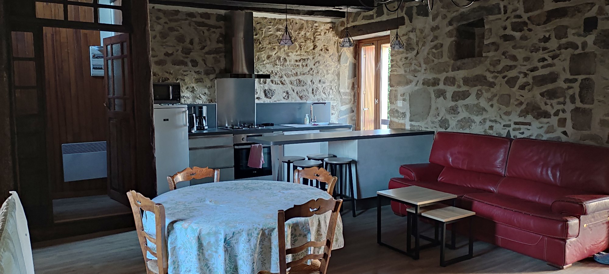 Maison de village à l'intérieur moderne, entièrement rénovée en 2022 tout en conservant le cachet de la bâtisse en pierres apparentes.