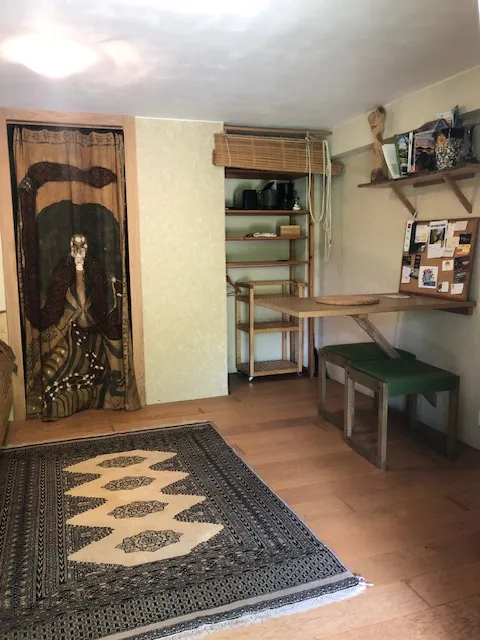 Entièrement réalisée avec des matériaux écologiques ,elle a une superficie de 20 m² environ. De plain-pied, elle s'ouvre sur une grande terrasse couverte et un jardin d'agrément ; elle offre un lieu de vie indépendant.