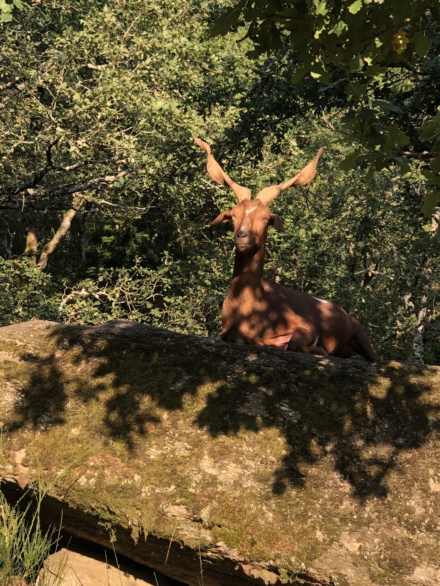 Au sein de cette nature j'ai choisi d'avoir un mode de vie au plus près de celle-ci. J'élève avec passion un petit troupeau de huit chèvres sur un terrain boisé et rocheux de quelques hectares autour de la maison, ce qui donne un attrait particulier à cet environnement.