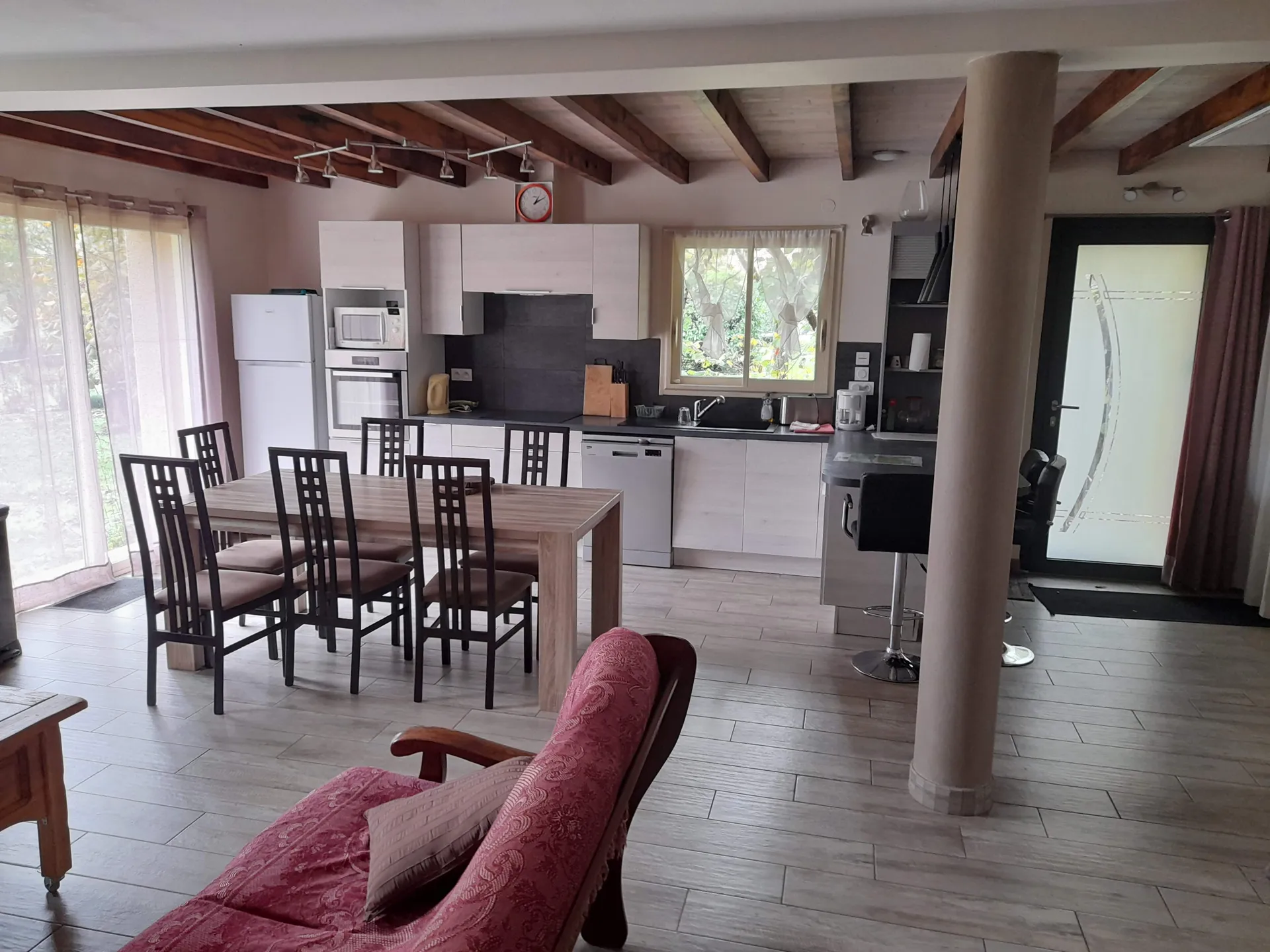 Vous pourrez profiter de ce lieu tranquille avec vos enfants (prêt de jeux). Il dispose de tout le confort avec un espace salon lumineux et une cuisine équipée. Idéal pour une famille de 4 personnes avec les 2 lits simples. Possibilité de prêt de matériel de puériculture à voir ensemble (chaise haute, lit parapluie, barrière de lit).