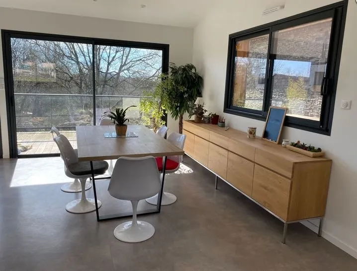 A moins de 2 kms de la plage des Moulinoches (lac Pont de salars), cette maison contemporaine pour 4 personnes est dotée de tout le confort moderne. Classée ***, ses larges baies ouvrent sur une belle terrasse en bois et un terrain clos de 300m2.