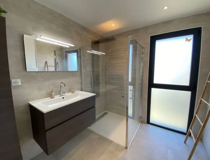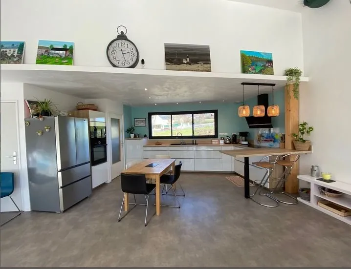Gîte indépendant de plain-pied, en bordure du village, en campagne, 2 chambres (1 lit 160, 2 lits 90), salle d'eau, coin-cuisine (lave vaisselle) / séjour (canapés, télévison, accès internet/wifi), chauffage au sol (aérothermie), cellier (lave-linge), terrasse privée non close (42 m2) , terrain privé clos de 300 m2, abri couvert pour voiture, salon de jardin, barbecue, table de ping pong.