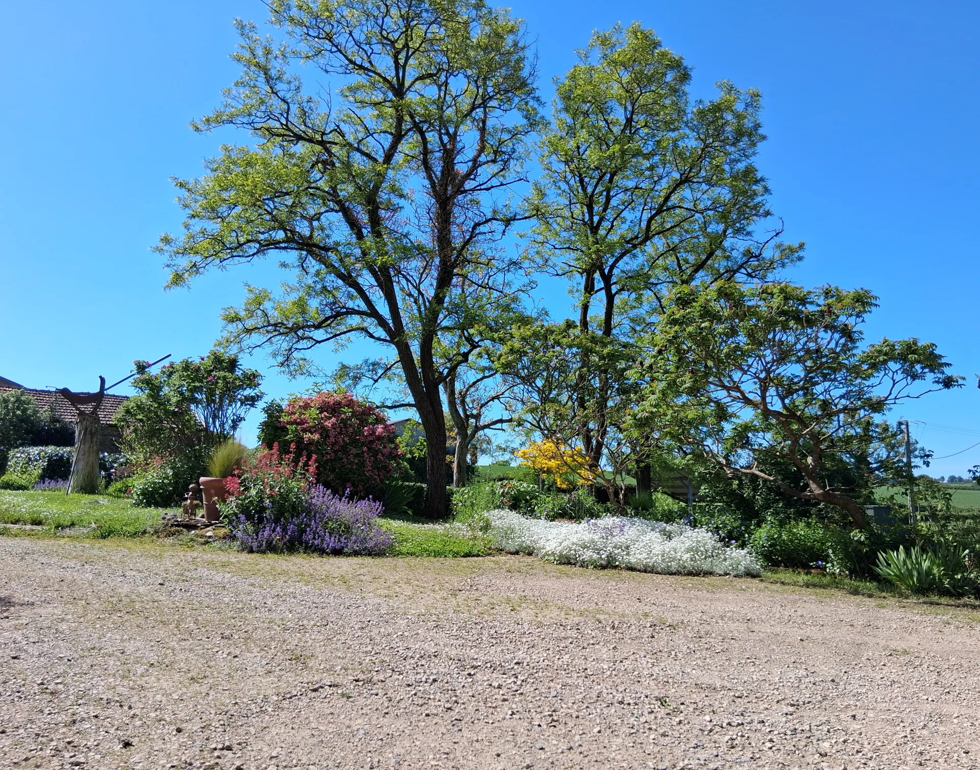 Situé sur le coté et l'arrière de votre gite, une terrain privé (400m2). Vous aimerez y prendre vos repas installés à la table de pique-nique, à l'ombre d'un acacia plus que trentenaire! Ou peut être préférerez-vous vous installer sous le préau au salon de jardin en fer forgé ?