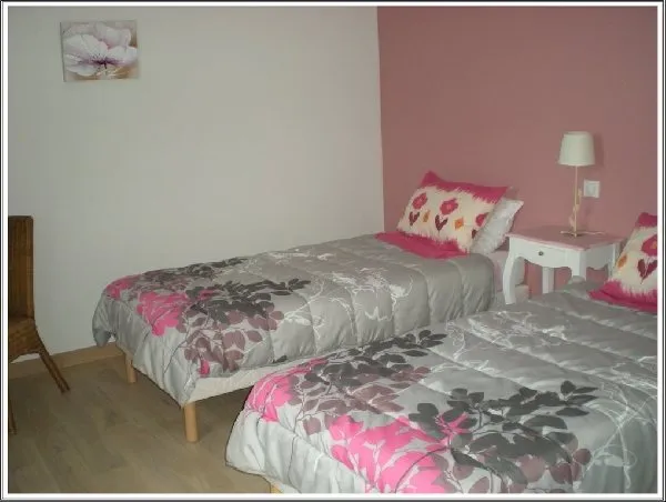A l'étage : 5 chambres avec parquet dont 4 disposent de lits en 90 x 200, jumelables à la demande, et une dispose d'1 lit superposé. Possibilité de rajouter des lits bébé.