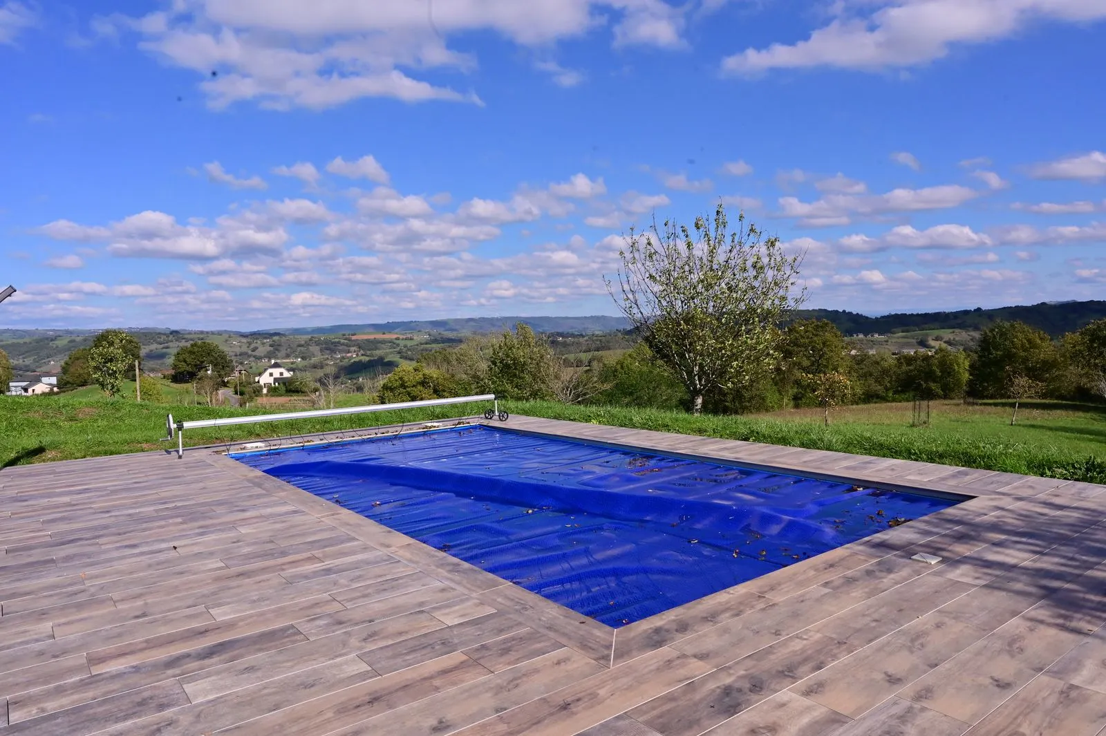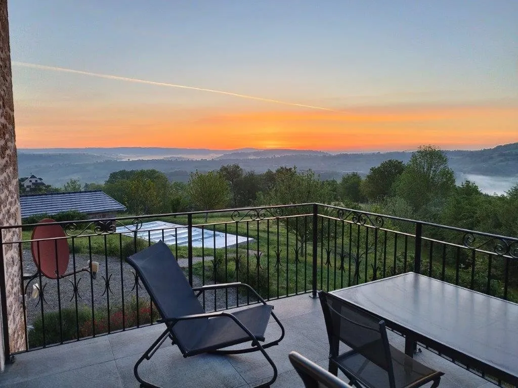 Gîte indépendant, de 130m2 avec climatisation réversible et piscine privée jouissant d’une magnifique vue. Non loin d’un hameau, en pleine campagne à 15 km de Conques, entre le Vallon de Marcillac et Vallée du Lot. 3 chambres (3 lits 160 et 1 lit de 90), 2 sdd et 1 sdb, cuisine super équipée (plaque à induction, four électrique et M-O, frigo-congélateur, lave-vaisselle…), salle à manger/salon (canapés, télévision, poêle à bois), chauffage électrique, cellier (lave-linge, sèche-linge), 2 terrasses privées non closes de 60m2 chacune, 1 terrasse close (14m2), terrain privé clos (1 ha 50), piscine privée (8x4), abri couvert privé pour 3 voitures, salons de jardin, BBQ, local vélo, borne de recharge électrique (à partir de 05/2025)