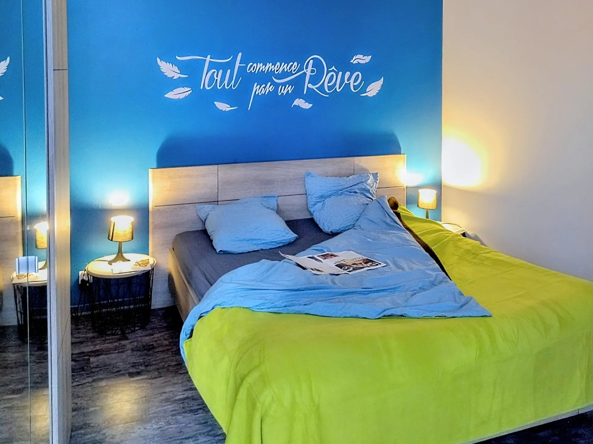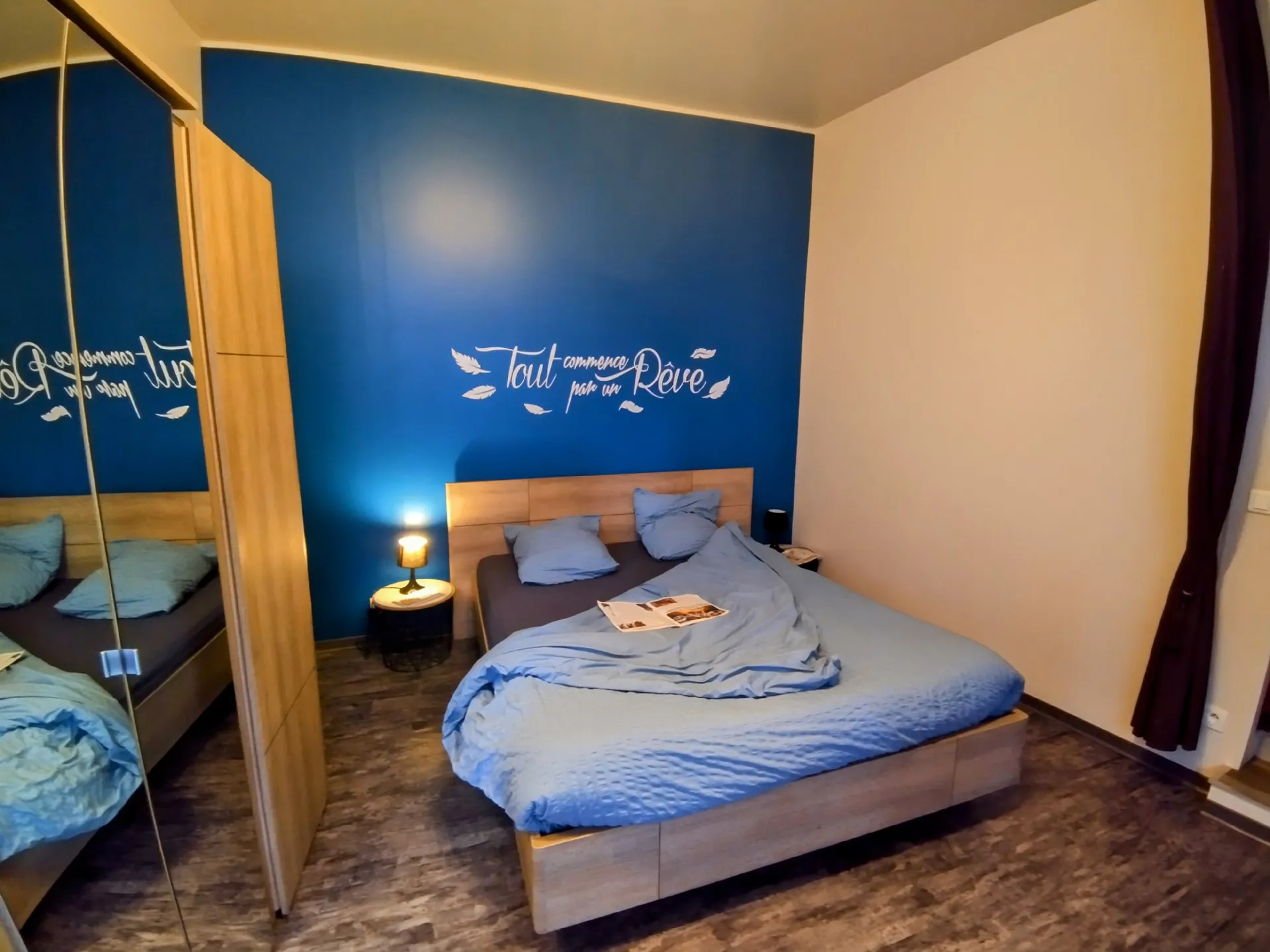 La chambre est équipée d'un lit king size (160x200), d'un lit superposé et d'une grande armoire avec miroir.