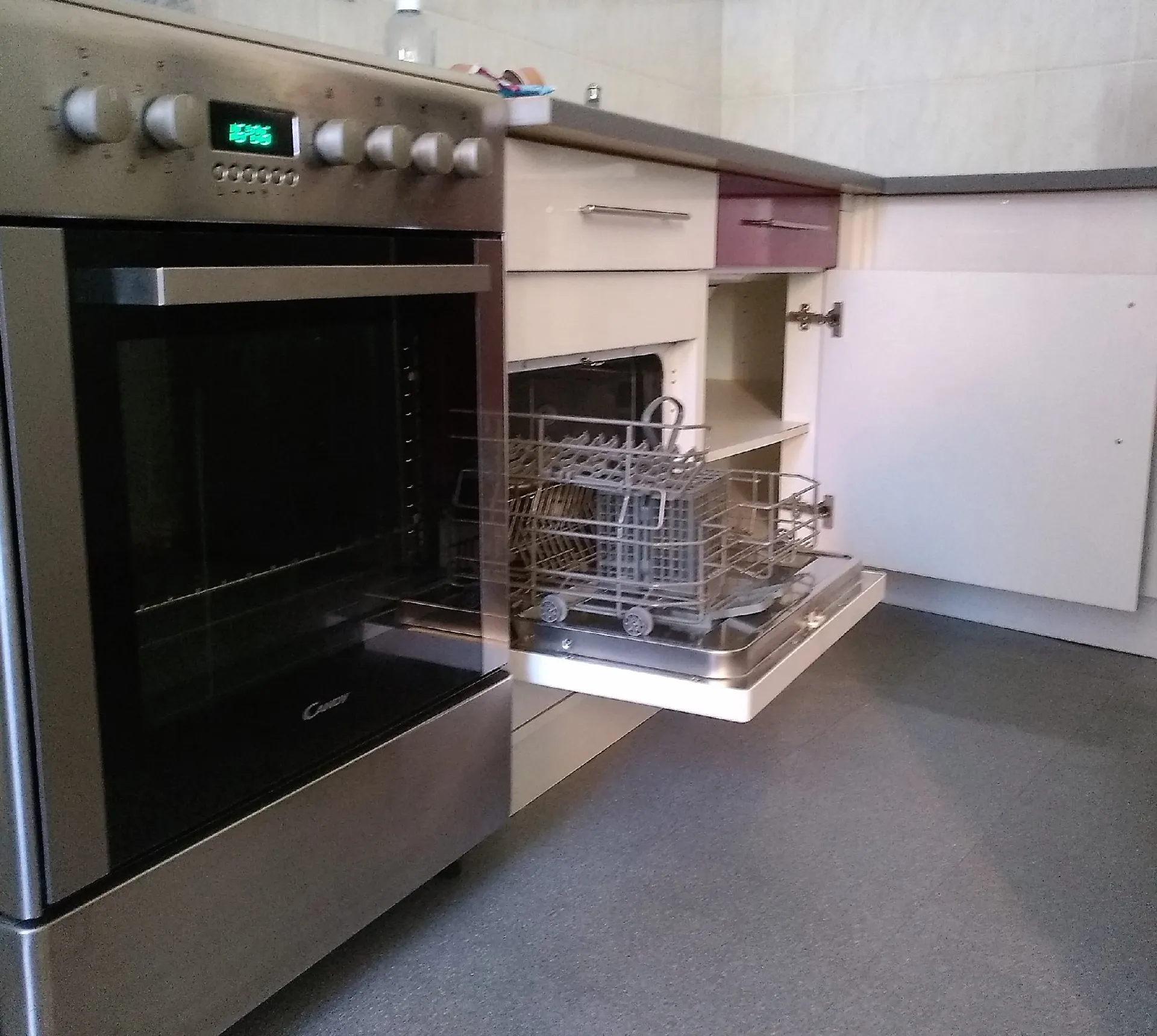 La cuisine est entièrement équipée : cuisinière vitrocéramique, micro-ondes, lave-vaisselle, réfrigérateur-congélateur grande capacité, cafetière Dolce Gusto.