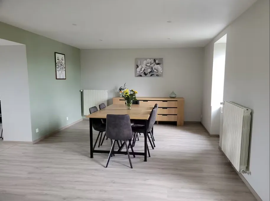 Situé au cœur de notre ferme agricole, le logement est un appartement mitoyen à notre maison, avec un accès indépendant. Il se trouve au premier étage et comprend :