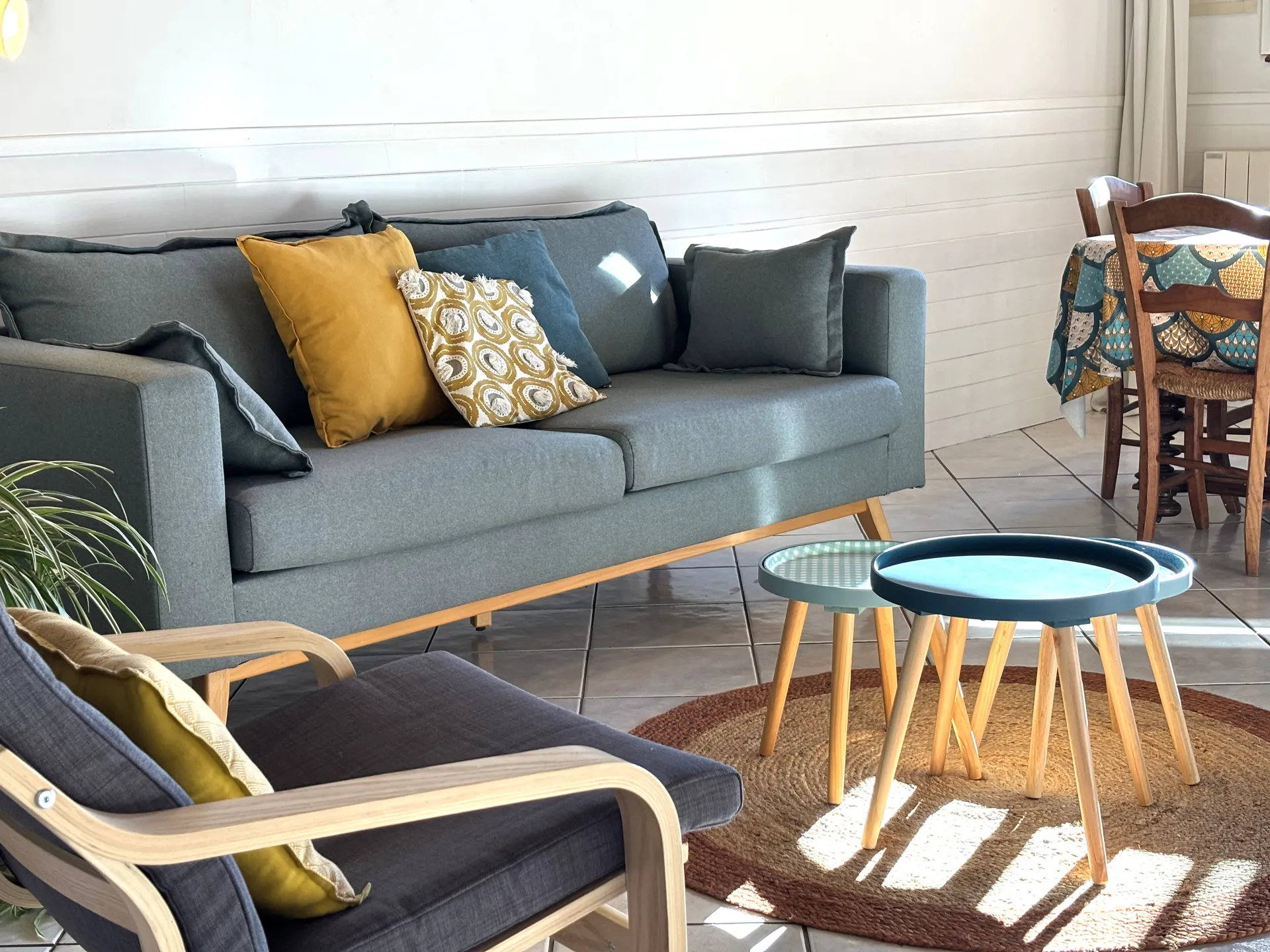 Une grande pièce de vie comprenant la cuisine, le séjour et la salle à manger.