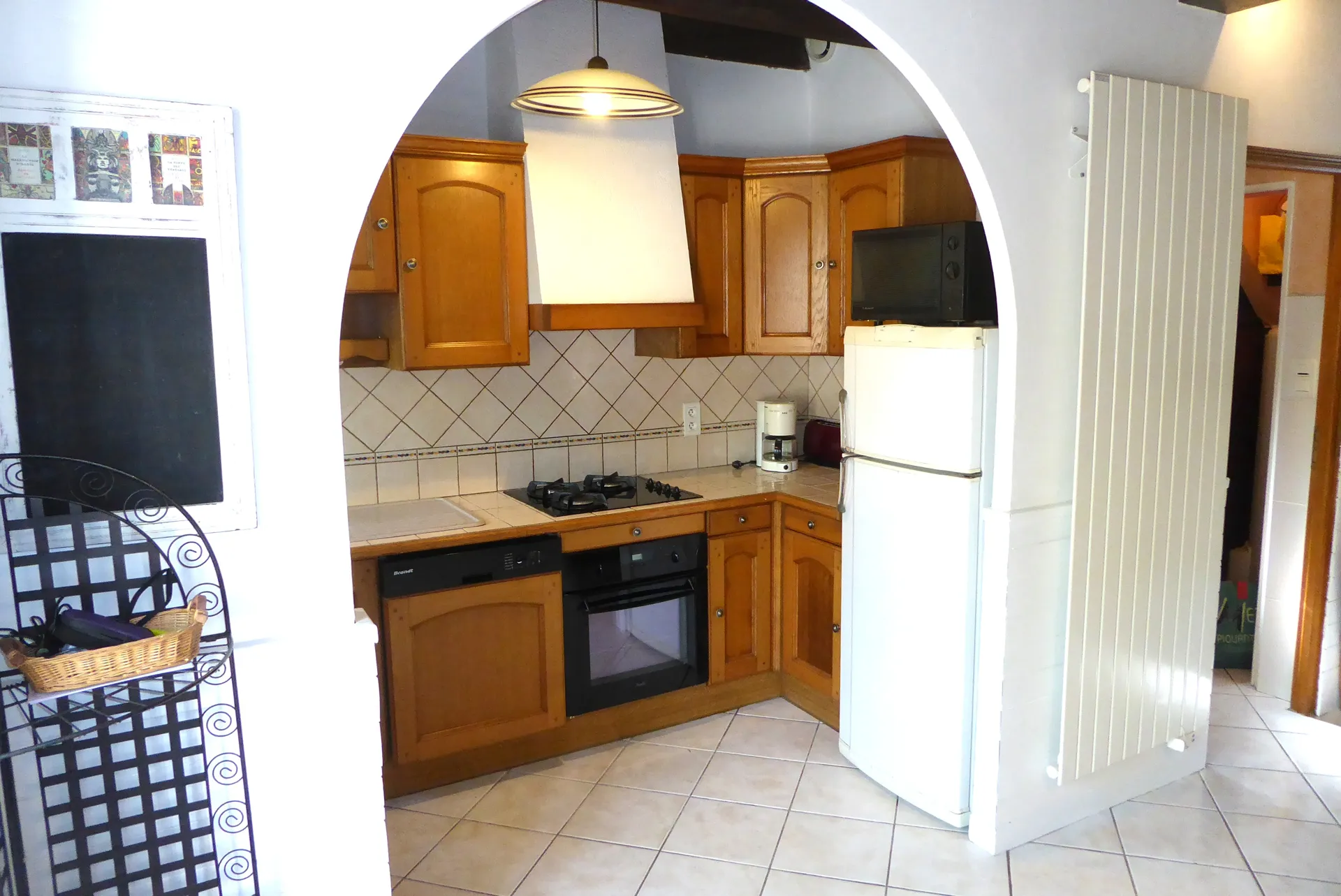 Une Cuisine ouverte entièrement équipée : cafetière à filtre, bouilloire, micro-ondes, four électrique, lave-vaisselle, frigo, congélateur...