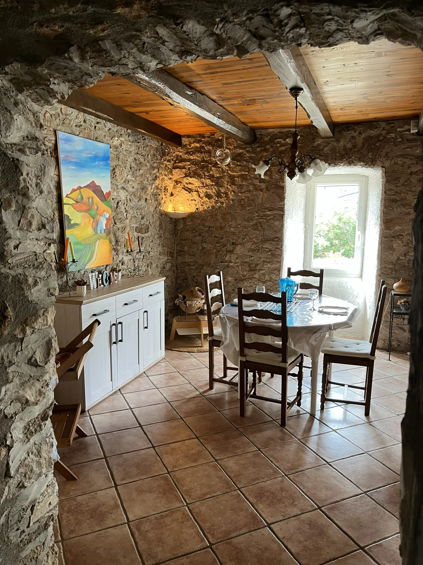 Notre charmante maison caussenarde de 80m², est idéale pour des vacances en famille à la campagne. Vous pourrez partager d'agréables moments dans le grand salon/salle à manger, avec poutres apparentes, équipé d'un poêle à bois pour se réchauffer les fraîches soirées de début de Printemps ou d'Automne.