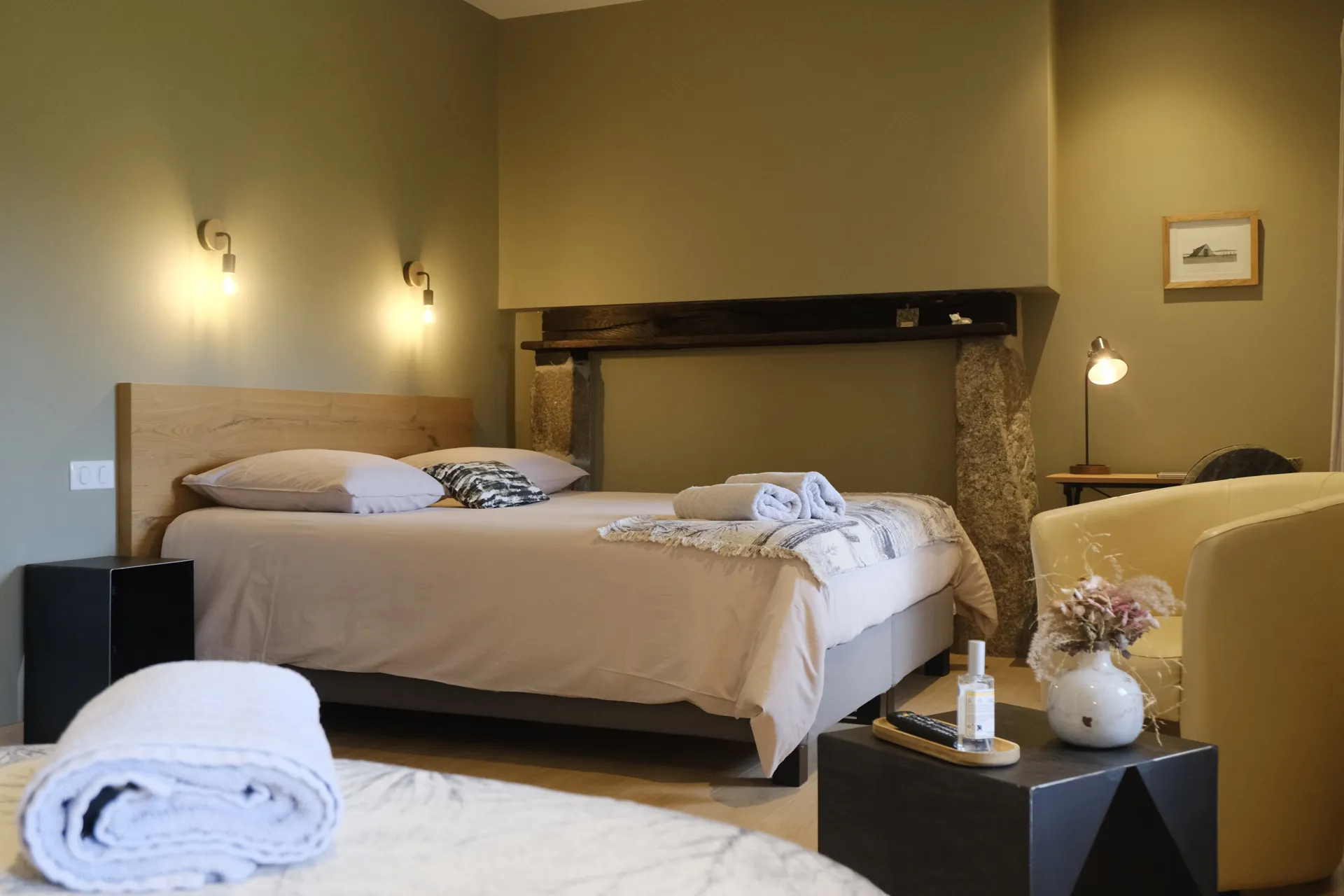 Après une journée de découverte des richesses de l'Aubrac vous apprécierez la tranquillité du lieu, son grand espace de vie avec une cuisine équipée, un salon cosy, une cheminée dotée d'un poêle à bois, ses deux chambres parentales de 30m2 et 20m2 avec leur salle d'eau privative, lits king size 180 (draps et serviettes inclus), écrans plats, coffres fort, WC séparés, wifi, Netflix.
