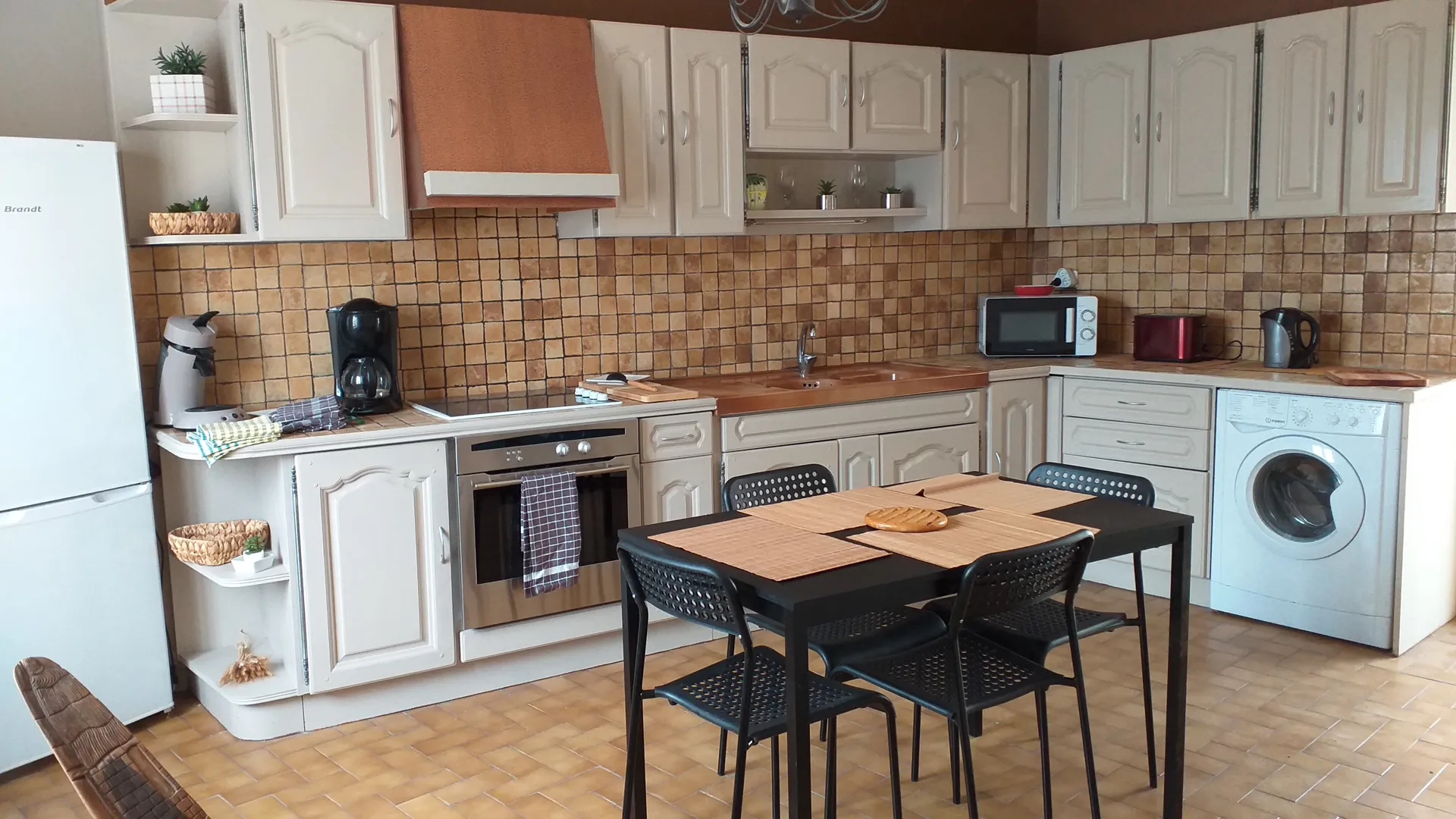 Le gîte se compose d'un terrain en terrasses de 1 000 m², avec balançoire, toboggan, une balancelle pour admirer le paysage, une cabane pour les enfants, une piscine privée de 2 m sur 4 m et 1.30 de haut , une terrasse avec un barbecue, une véranda , une cuisine, frigo congélateur, micro onde , four, cafetière et senseo, bouilloire, grille pain , machine à laver le linge, un salon , salle de bain avec douche, équipement bébé, chaise haute, lit parapluie, baignoire , matelas à langer , poussette, à l'étage deux chambres, une avec un lit en 140 , deux lits en 90 cm. Vous pourrez garer votre voiture sur le parking qui se trouve à 50 mètres du gîte.