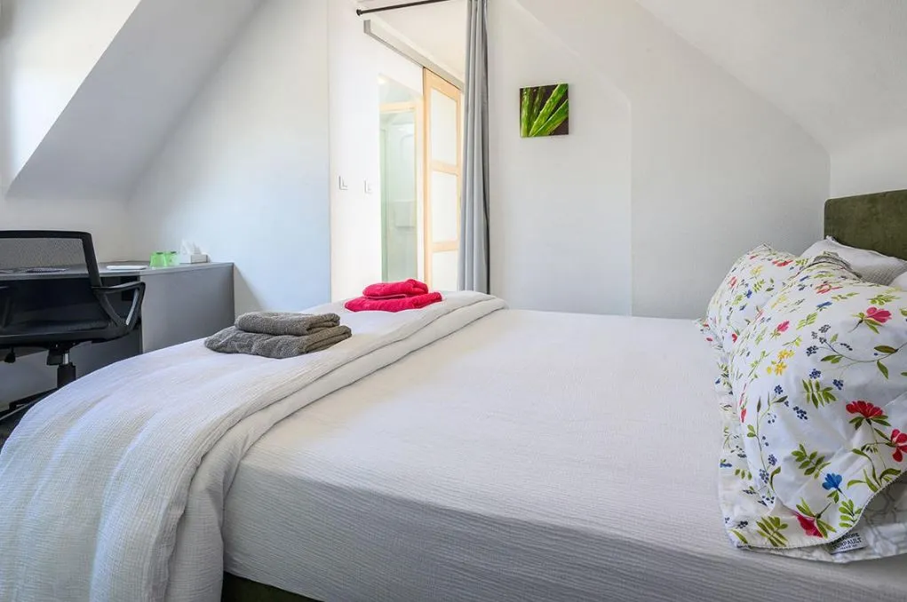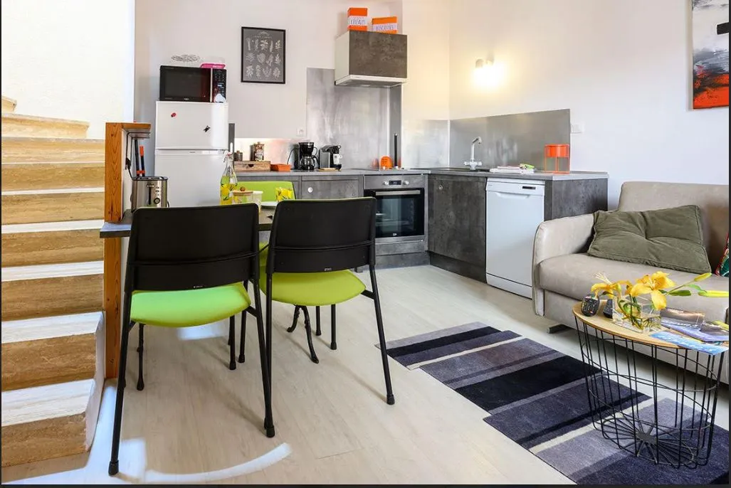 Vous profiterez d’une chambre avec un matelas king size de 160x200, conçue pour votre santé avec des matériaux sans produits nocifs. La salle de bain dispose d’une douche en duplex, parfaite pour un moment de détente et votre bien être.Un convertible en 120x190 pour une troisième personne dans le séjour.Un séjour avec cuisine, et tout l’équipement pour passer un agréable moment.